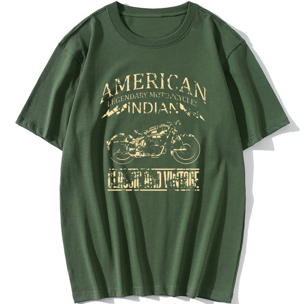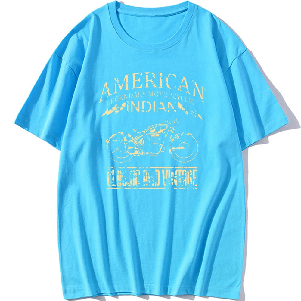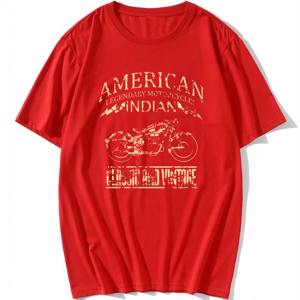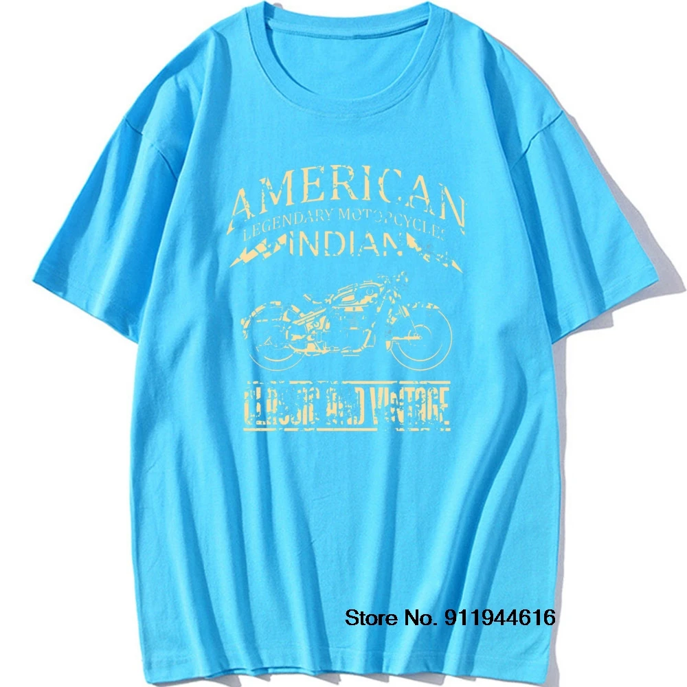 Винтажная американская мотоциклетная индийская мужская футболка, ретро мотоциклетная гоночная машина, крутые футболки с О-образным вырезом, хлопковые яркие футболки