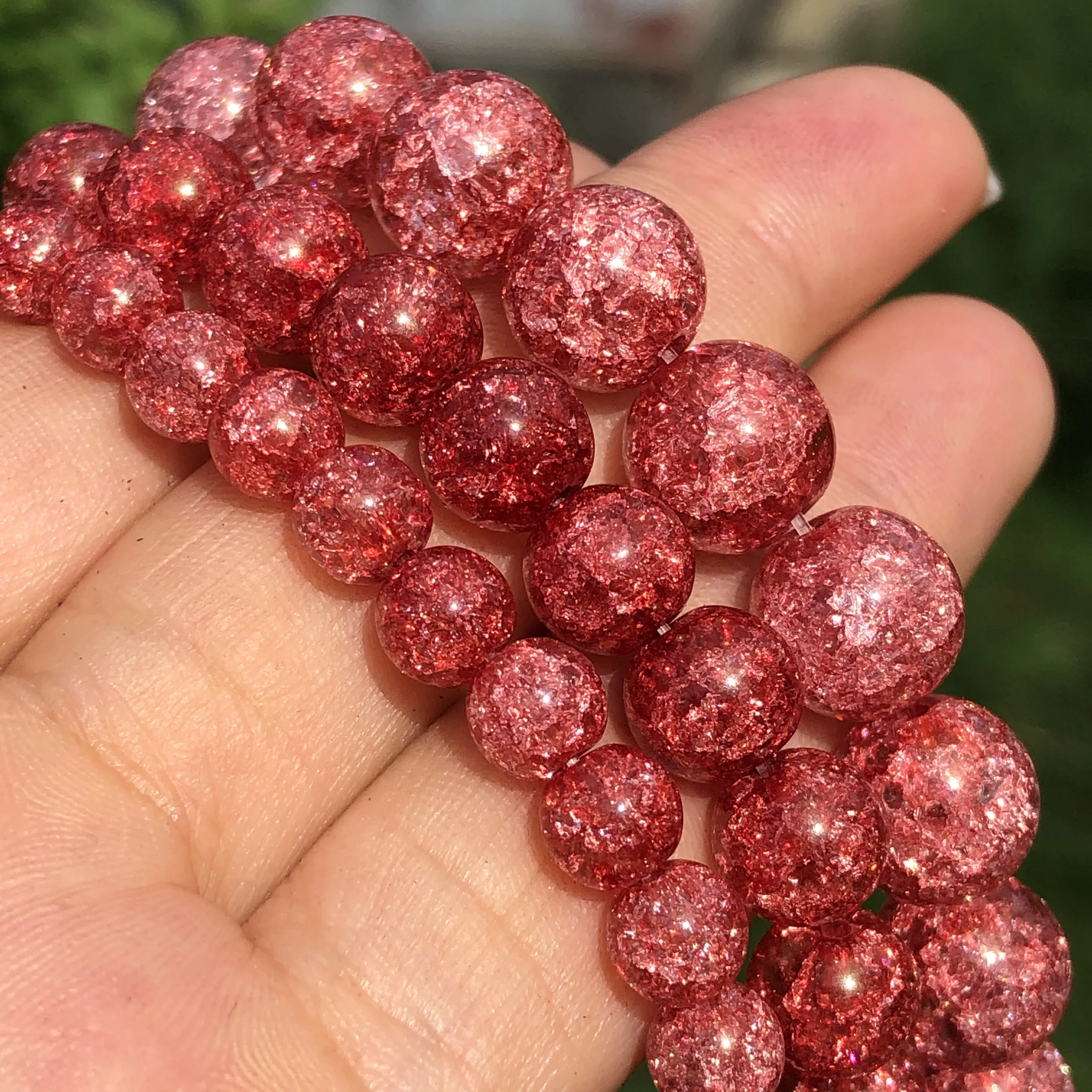 Бусины Из Натурального арбуза, красные, с трещинами, кварцевые, стеклянные, Круглые, распорные, свободные бусины для изготовления ювелирных изделий, браслетов, ожерелья 15 дюймов