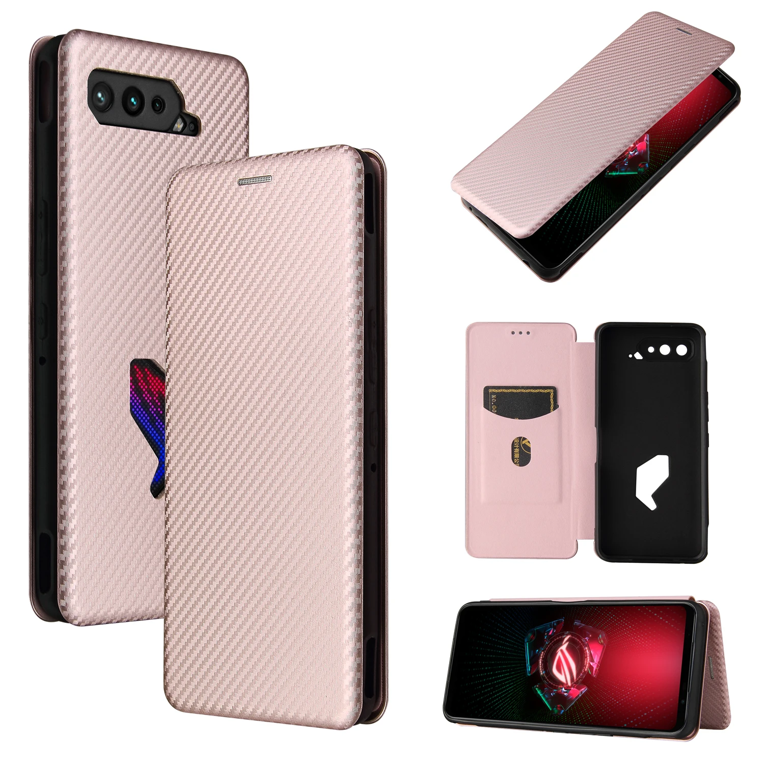 Для ASUS ROG Phone 5, роскошный противоударный флип-кошелек из угле...