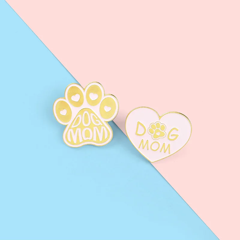 Значок на лацкан с изображением собаки, мамы, розовые эмалевые була...