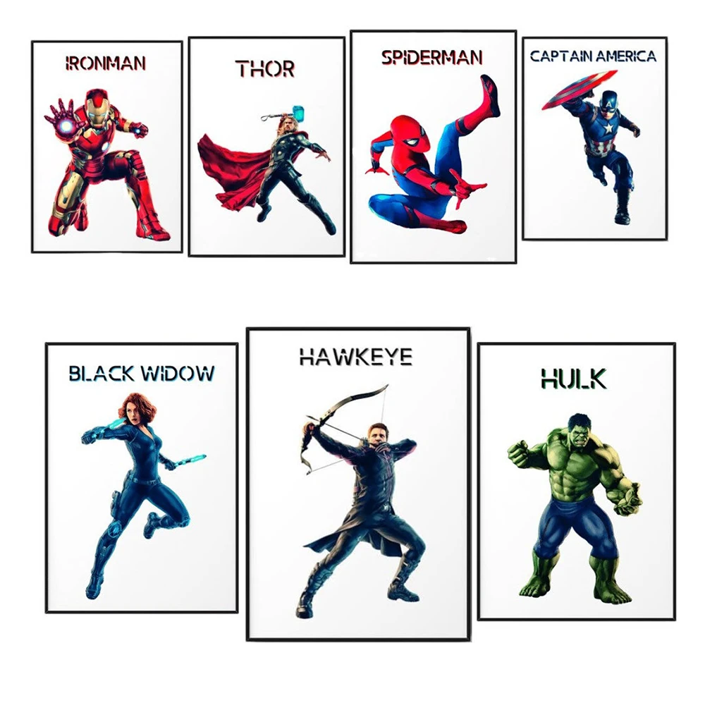 Marvel постеры с супергероями Мстители живопись на холсте, мультфильмы Капитан Америка Черная Вдова стена искусство мальчик детская комната дом Hecor