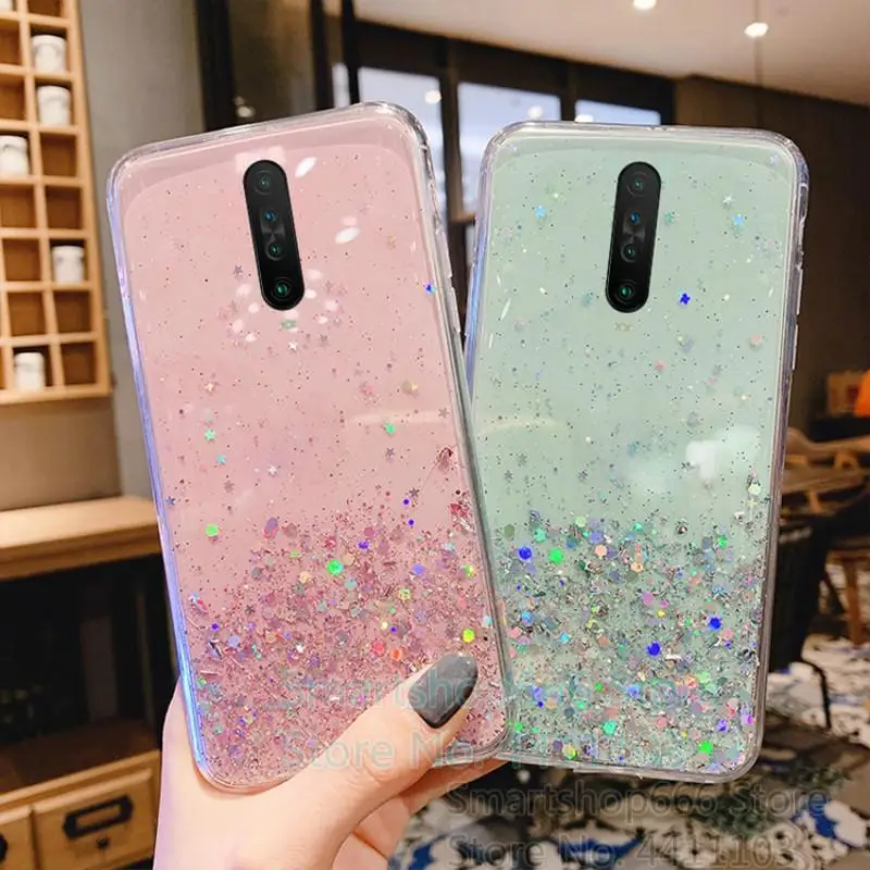 Прозрачный мягкий чехол с блестками для OPPO Realme C12 C15 3 5 6 Pro C2 C3 X7 X50 C11 OPPO A55 A52 A72 A15 A5 A9 2020 A92 A92S
