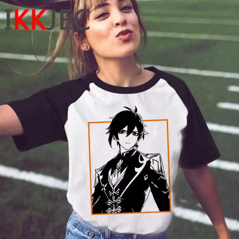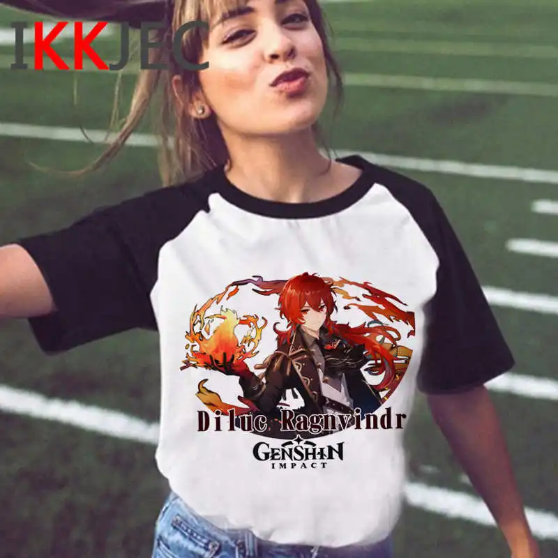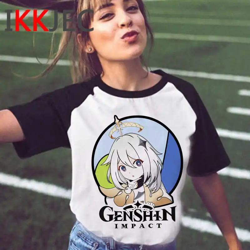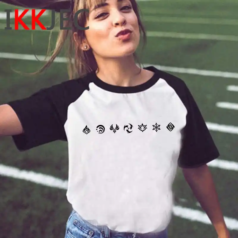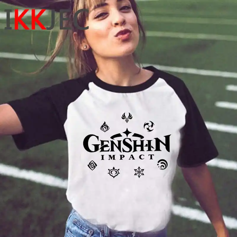 Genshin воздействие одежда женский harajuku kawaii гранж tumblr принт размера плюс футболка эстетическое