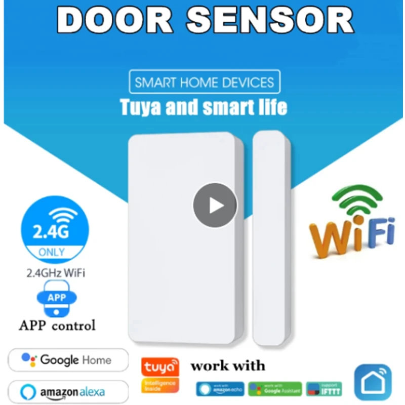 Смарт-детекторы открытиязакрытия двери Tuya, Wi-Fi, домашняя сигнализация, совместима с приложением Alexa Google Home Tuya