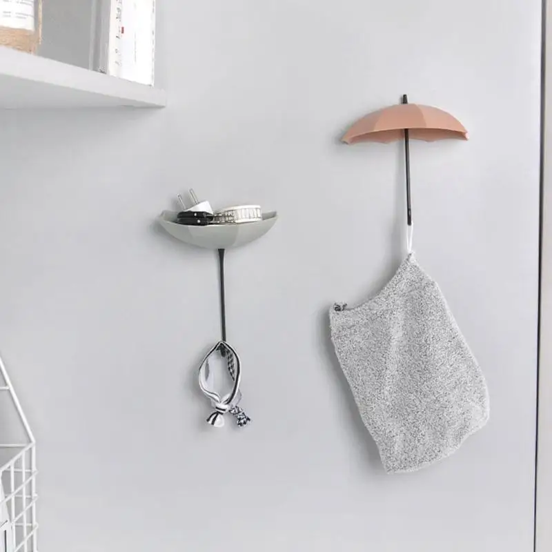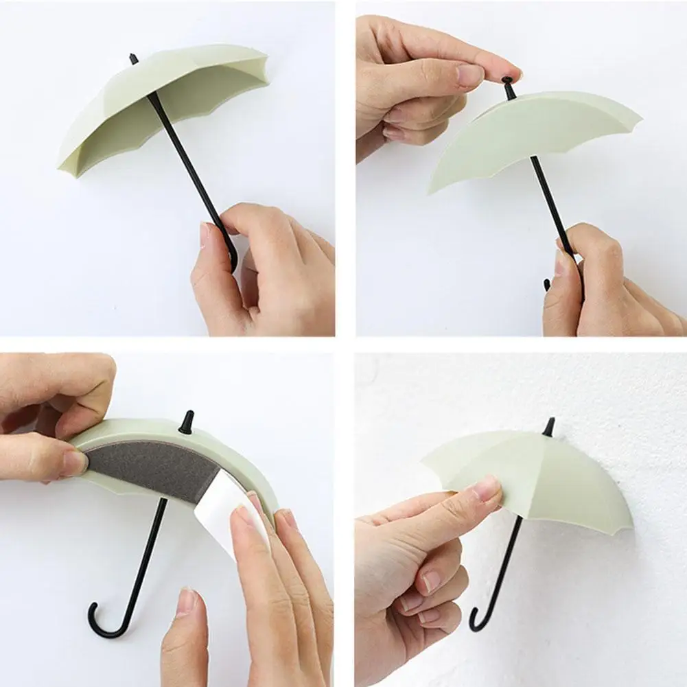 Креативный дверной крючок, 3 шт., Симпатичные самоклеящиеся настенные крючки в форме зонта, вешалка для ключей от сумок, клейкая стойка для ванной, кухни, крючок для одежды