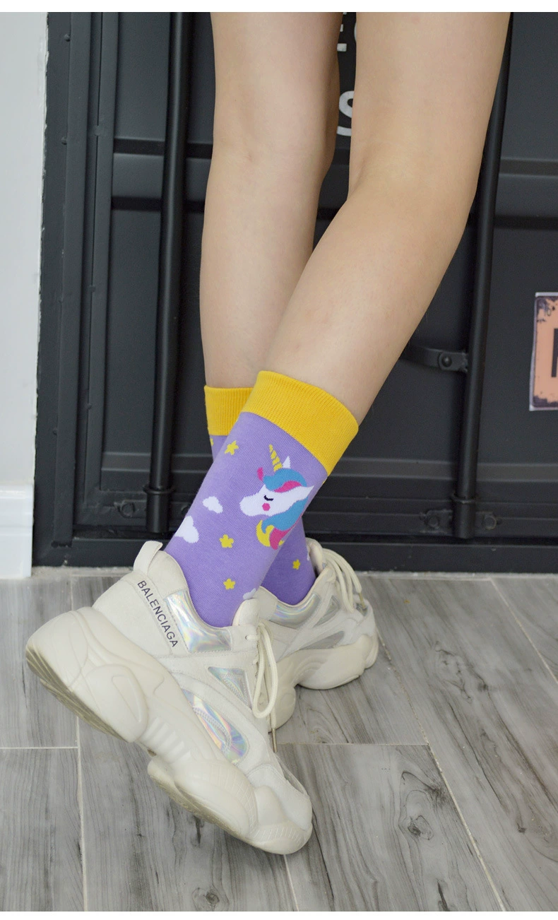 Носки женские в стиле Харадзюку, с забавным мультяшным рисунком фруктов, единорогов, фламинго, с милым рисунком животных, для скейтборда