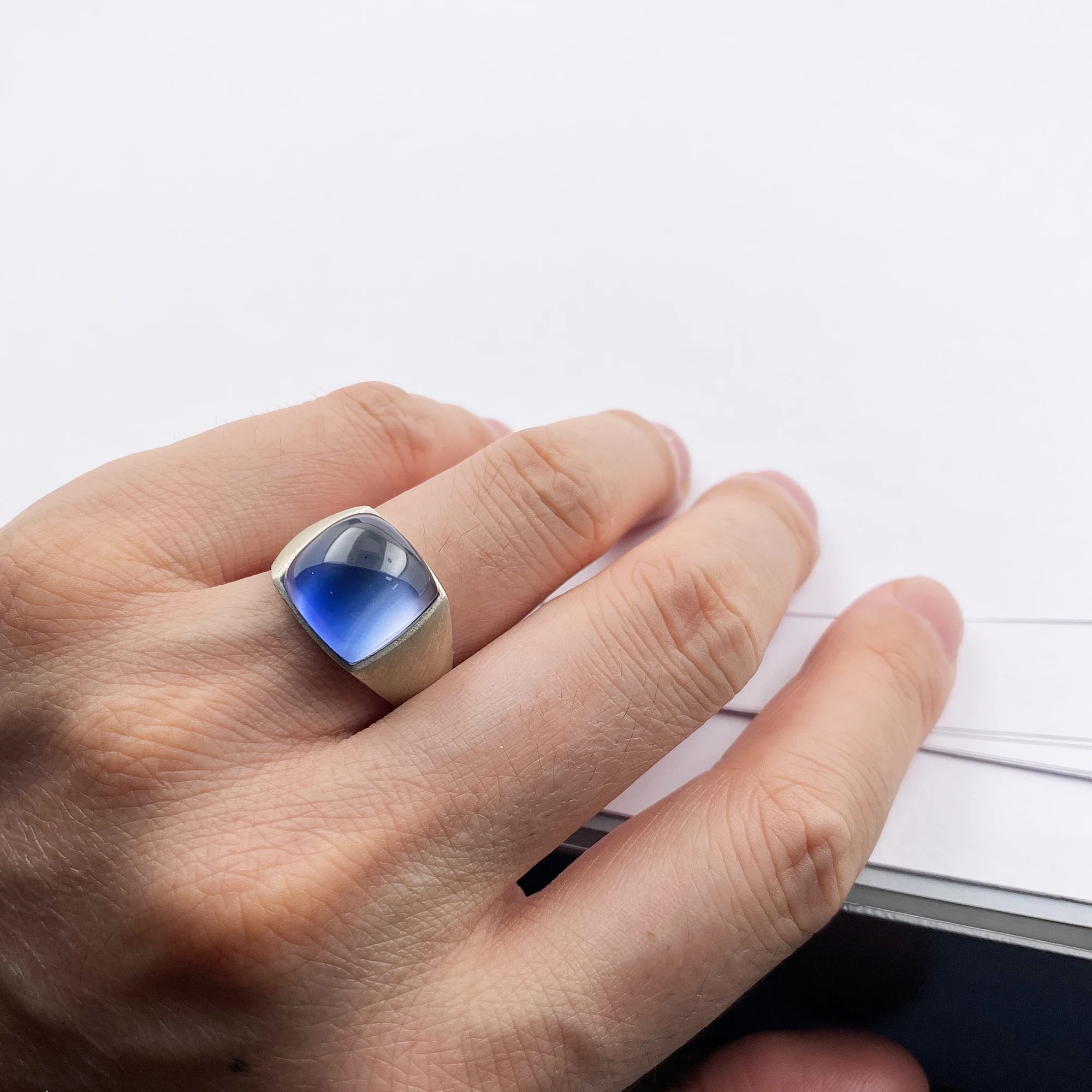 очень красивое кольцо. камень не голубой,а синий