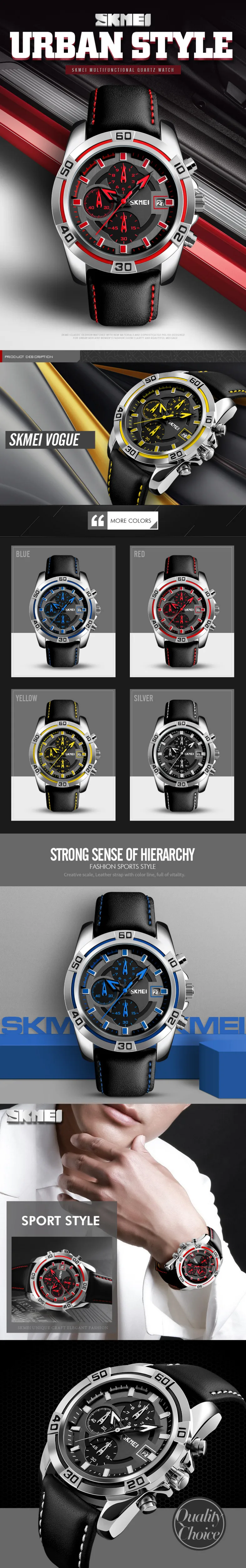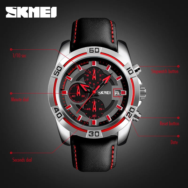 Часы наручные SKMEI Мужские кварцевые с хронографом, спортивные брендовые Роскошные, 2021