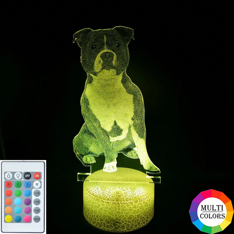 Акриловая настольная лампа, 3D стафридский бультерьер, светильник, светодиодный атмосферсветильник для домашних питомцев, подарок на день рождения icon star icon star icon star icon star icon star