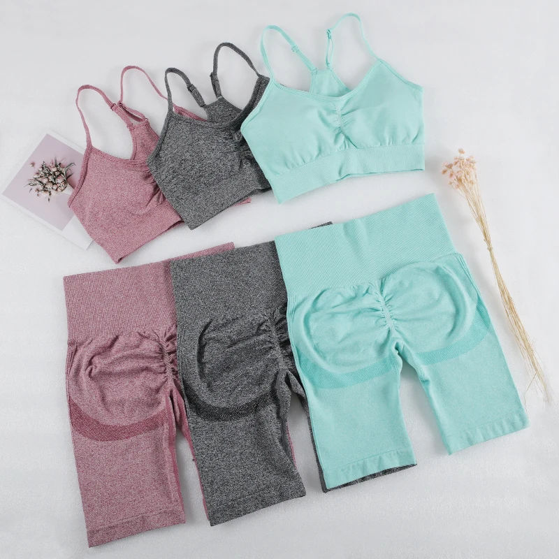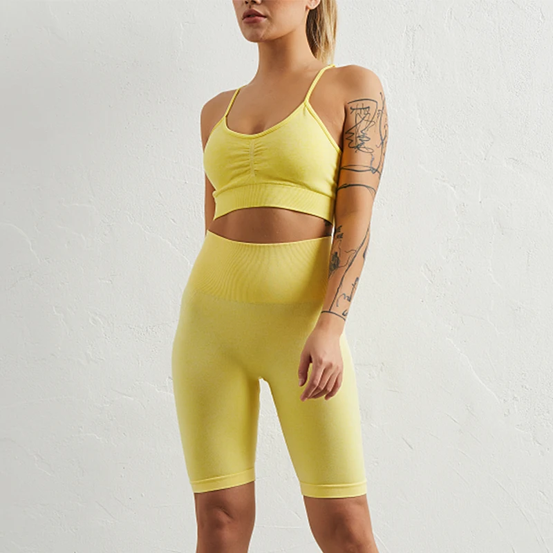 Комплект Спортивный Женский, бесшовный, с бюстгальтером и шортами д...