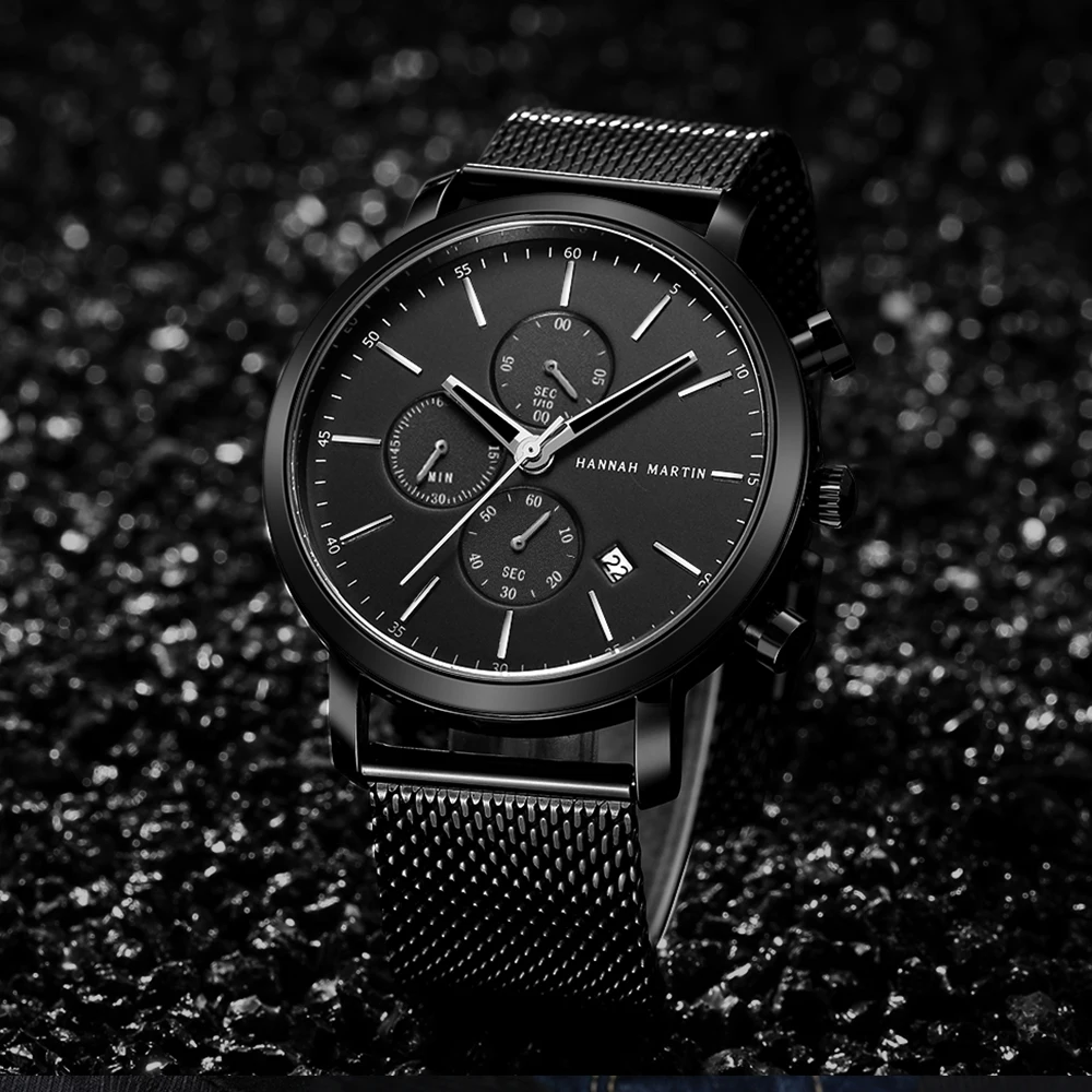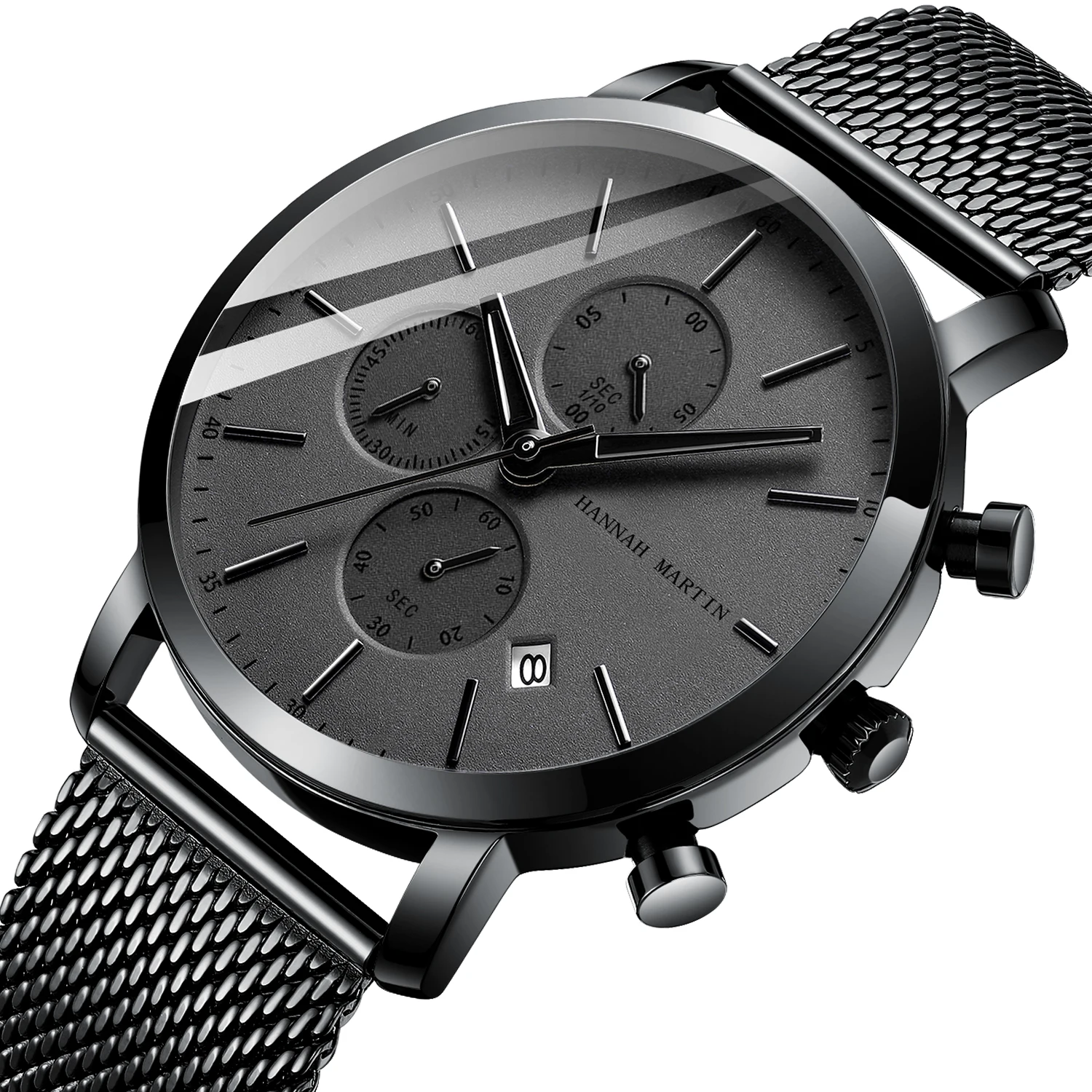 Часы наручные мужские кварцевые оригинальные, Классические деловые Модные Простые водонепроницаемые с календарем, полностью черные, с японским механизмом