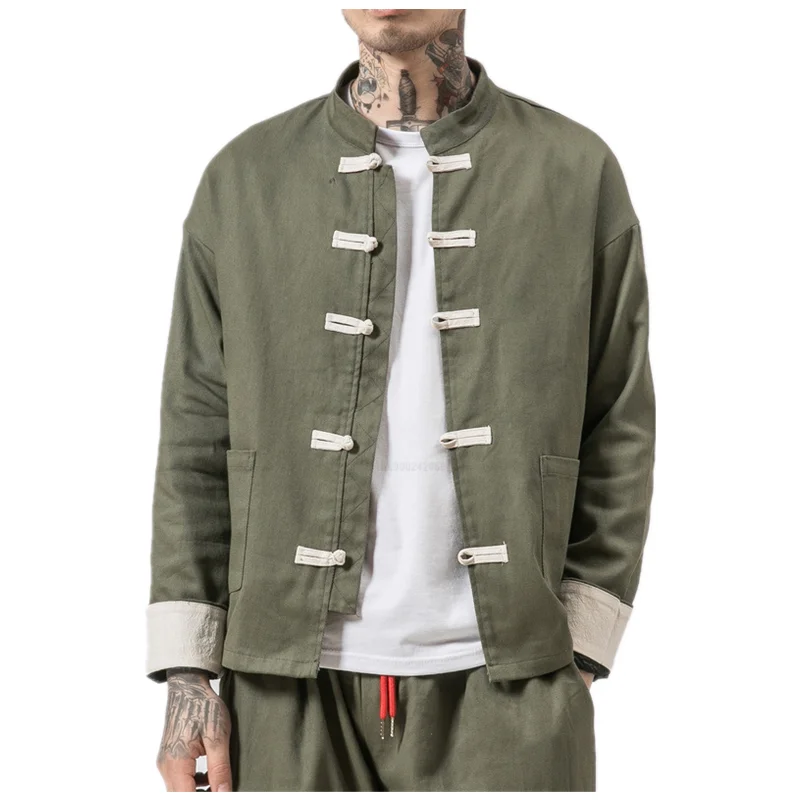 Кимоно мужское хлопковое, пиджак в китайском стиле, жакет на пугови...