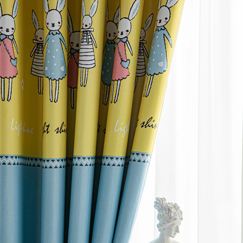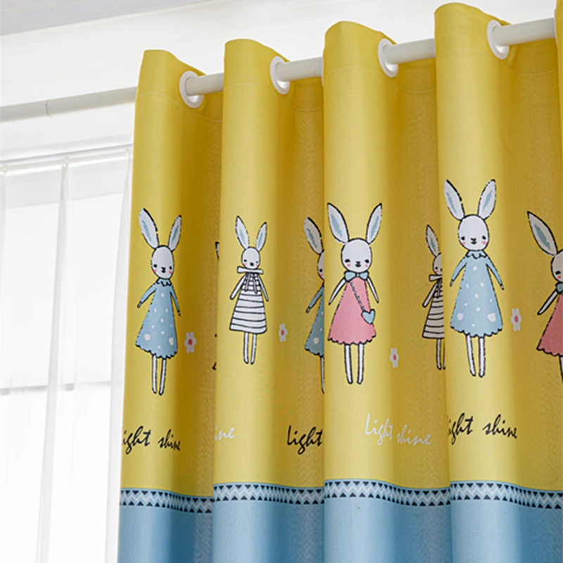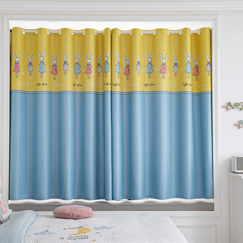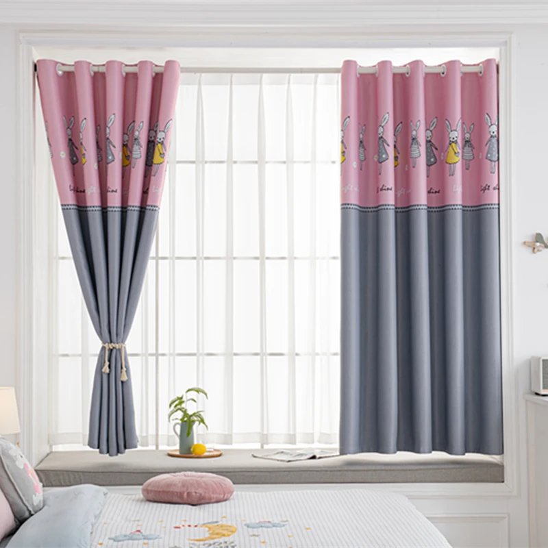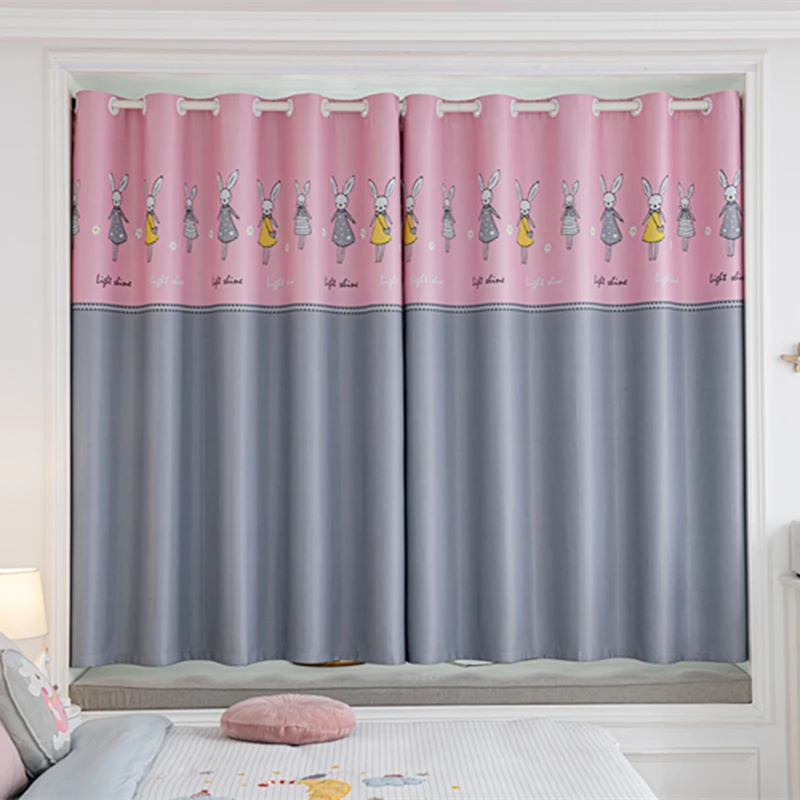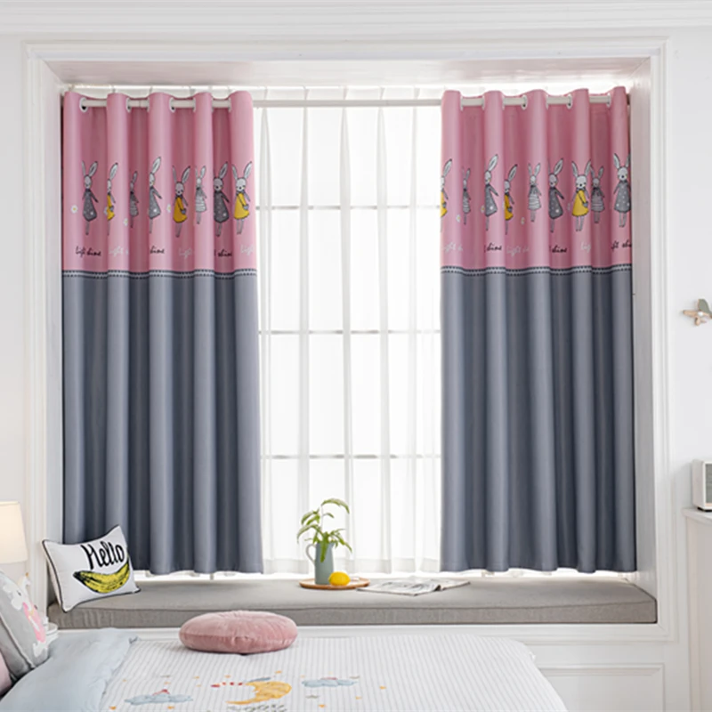 Розовые короткие шторы с милым кроликом для детской комнаты, оконные занавески в европейском стиле для гостиной, детской спальни