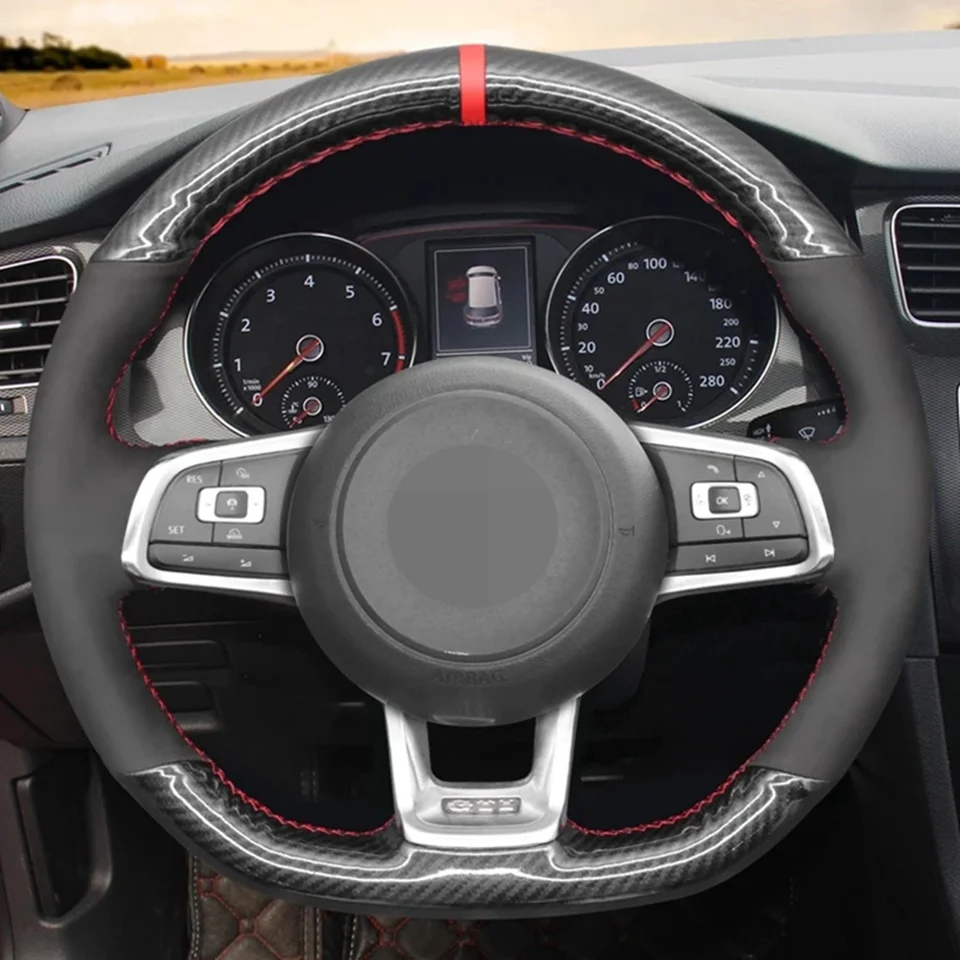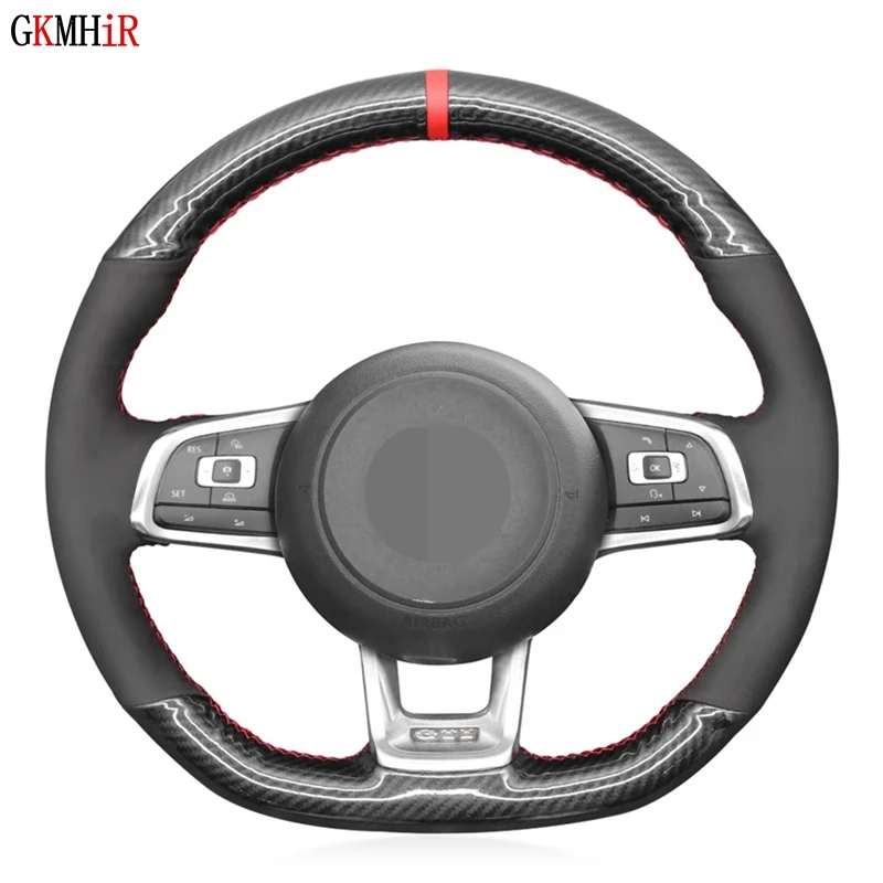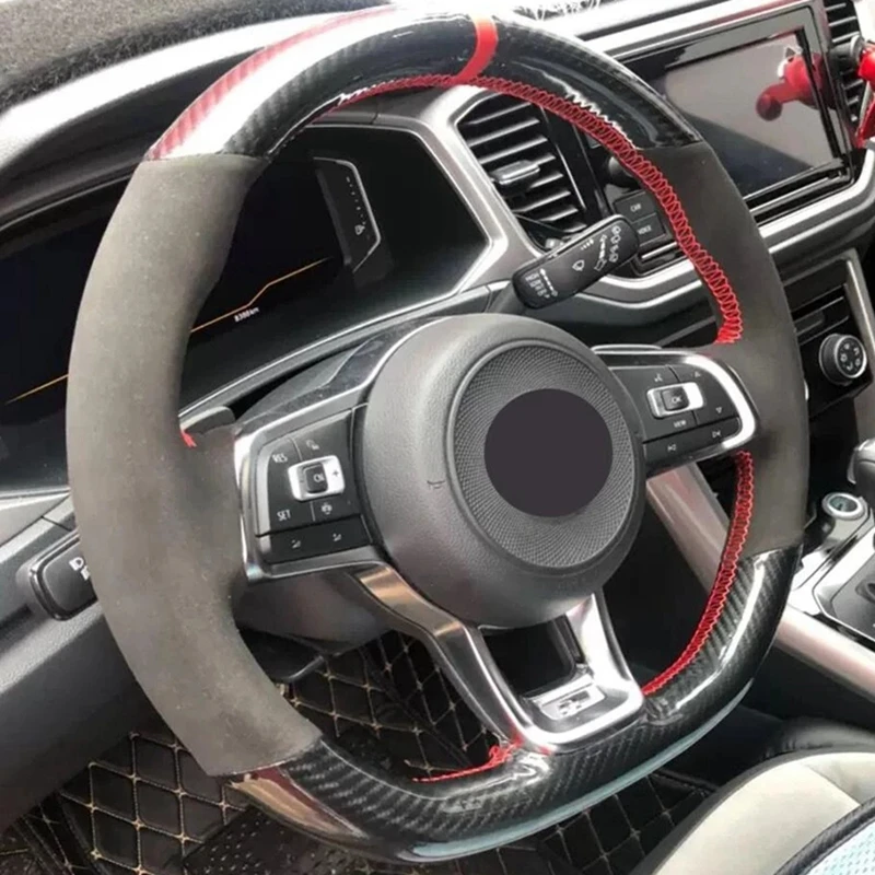 DIY нескользящего черного графита волокна замшевый чехол рулевого колеса автомобиля для Volkswagen VW Golf 7 GTI T-Roc Passat вариант (R-Line) Tiguan