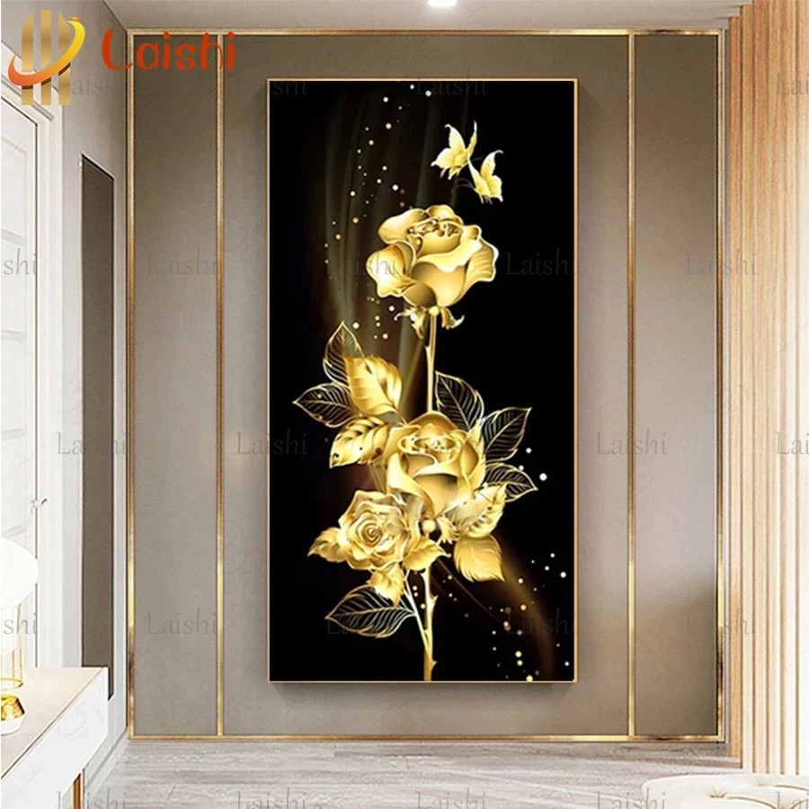5D алмазная живопись сделай сам, золотая, розовая, полная вышивка, квадратная, круглая, алмазная вышивка, цветок, вход, настенные украшения, Набор для творчества