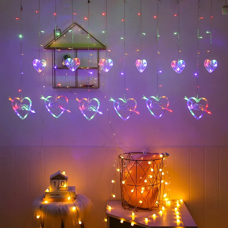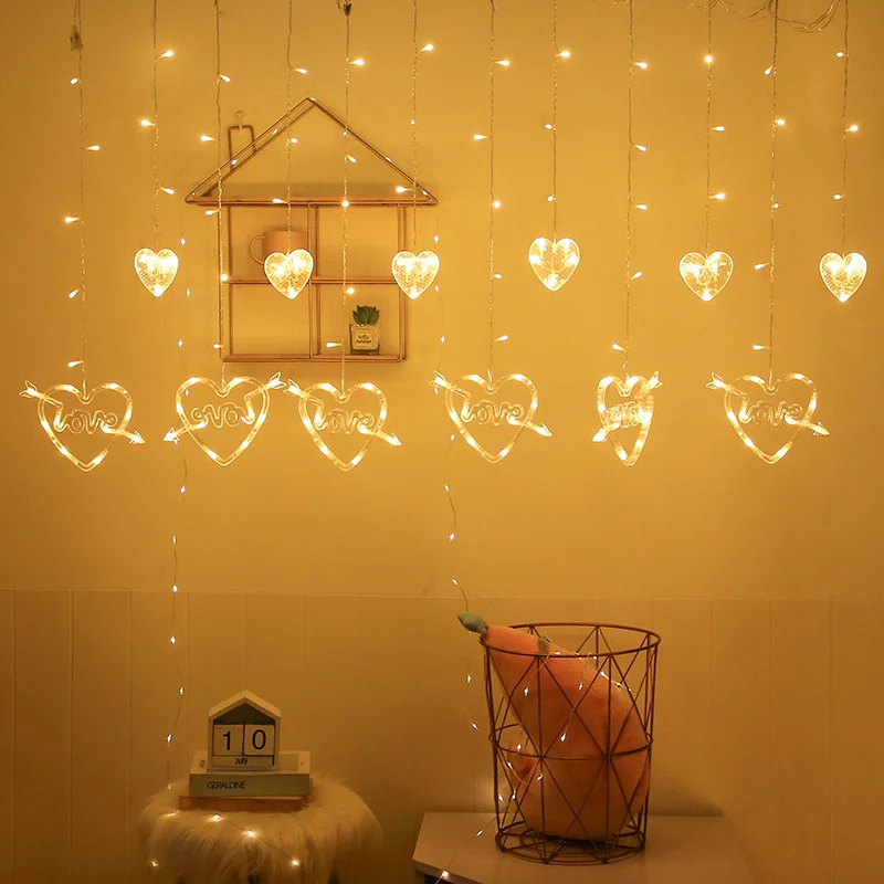 СВЕТОДИОДНАЯ Гирлянда-занавес в виде сердца, 2,5 м, 220 В, вилка европейского стандарта, Рождественская гирлянда, сказочные огни для комнаты вечерние ринки, свадьбы, праздничное украшение