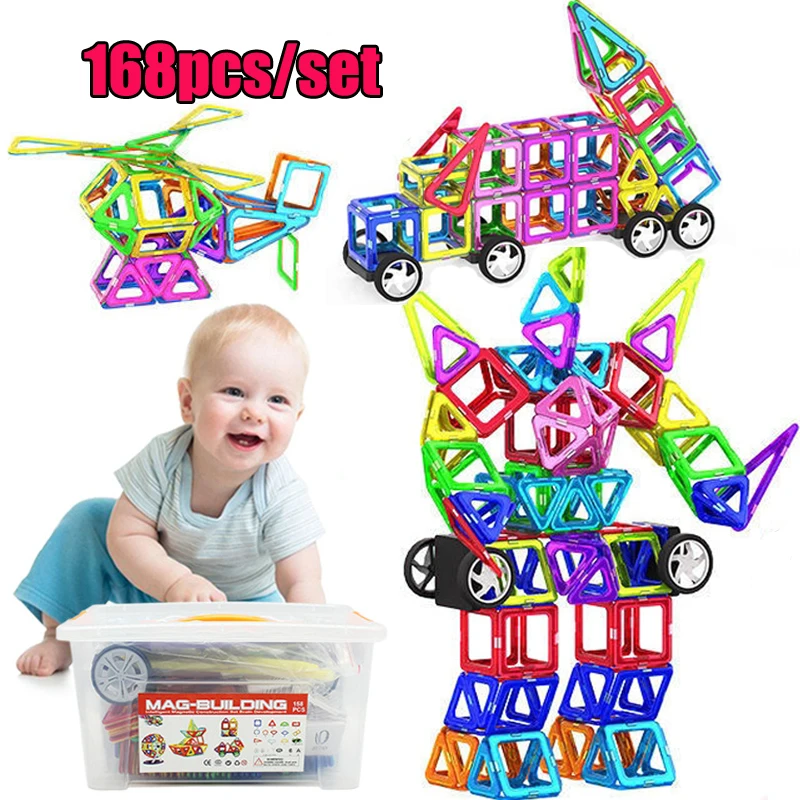 168 шт. магнитные блоки, Магнитный конструктор, набор моделей и строительных игрушек, развивающие игрушки для детей, подарки