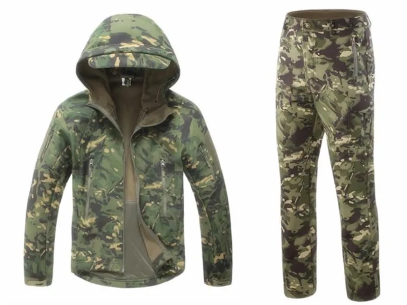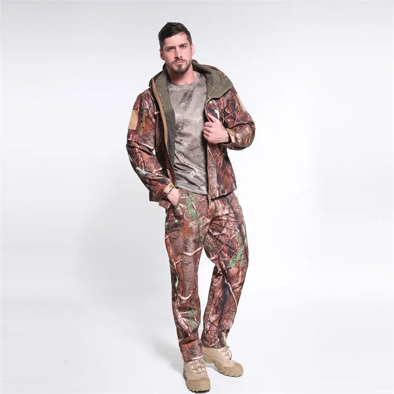 Мужские военные куртки комплект Softshell охотничий камуфляж одежда-ветровка флис Термальность тактическая верхняя одежда Кемпинг пеший Туризм Костюмы