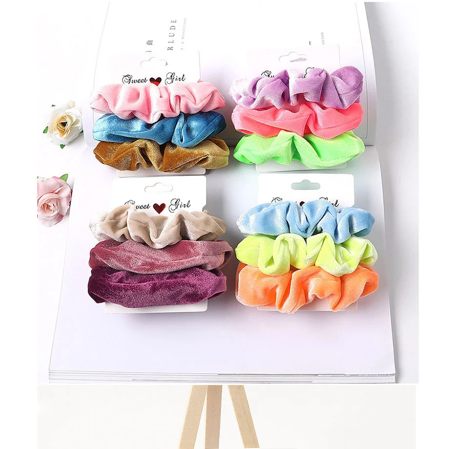 3 шт.компл. женские шелковые бархатные резинки для волос, однотонны...