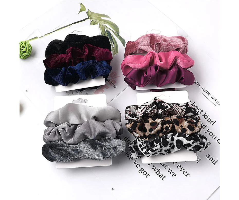 Комплект из 3 предметов, 1 предмет винтажное бархатноешелковые леопардовые Однотонная одежда резинки набор резинки для волос хвост держатель Модные женские аксессуары для волос