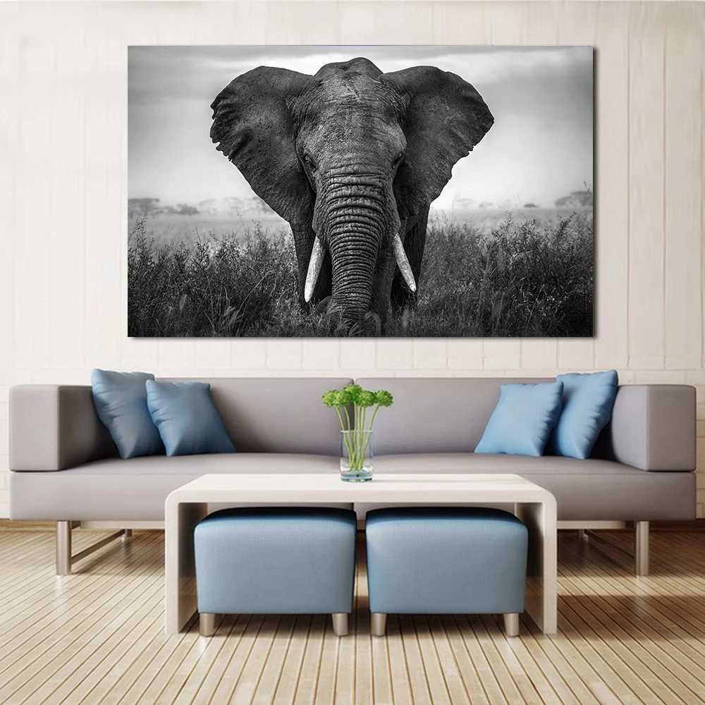 Wall Art Nordic печать темная Африка плакат с дизайном слон Черный и белый настенные картины для Гостиная Куадрос Dormitorio