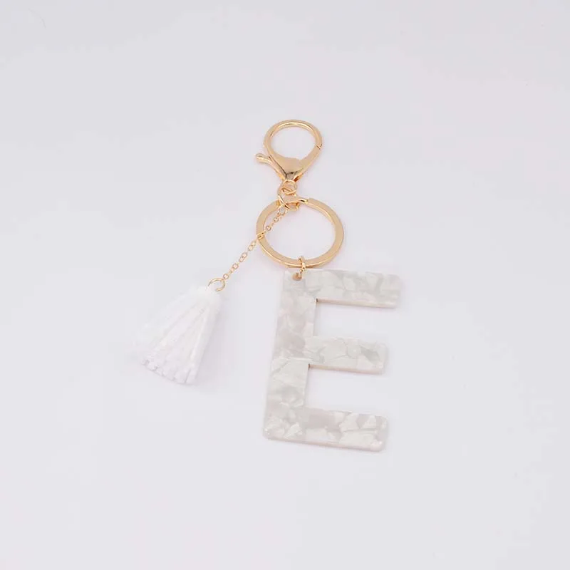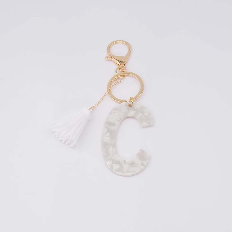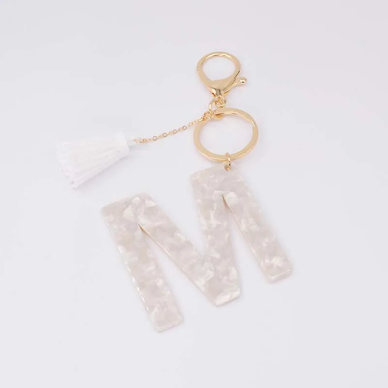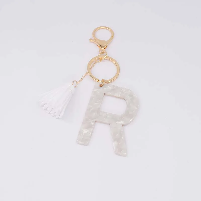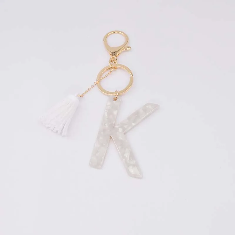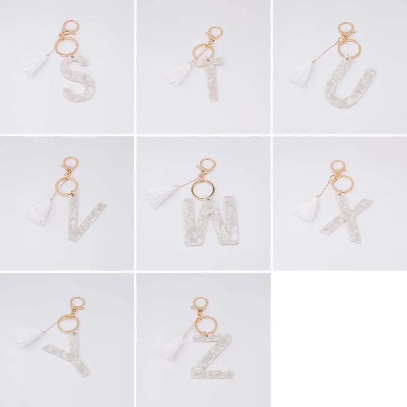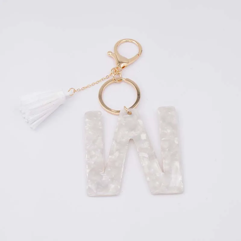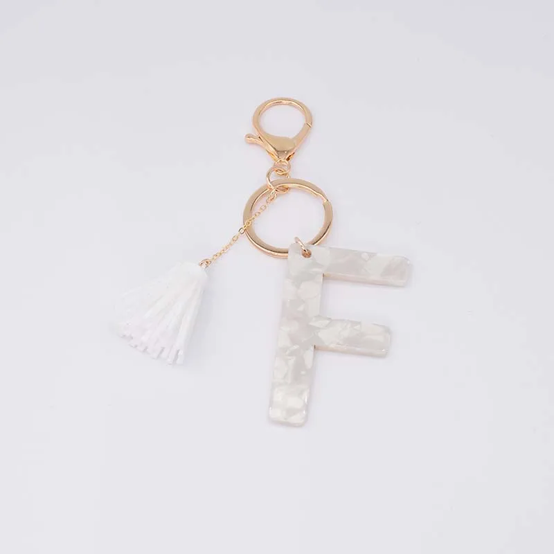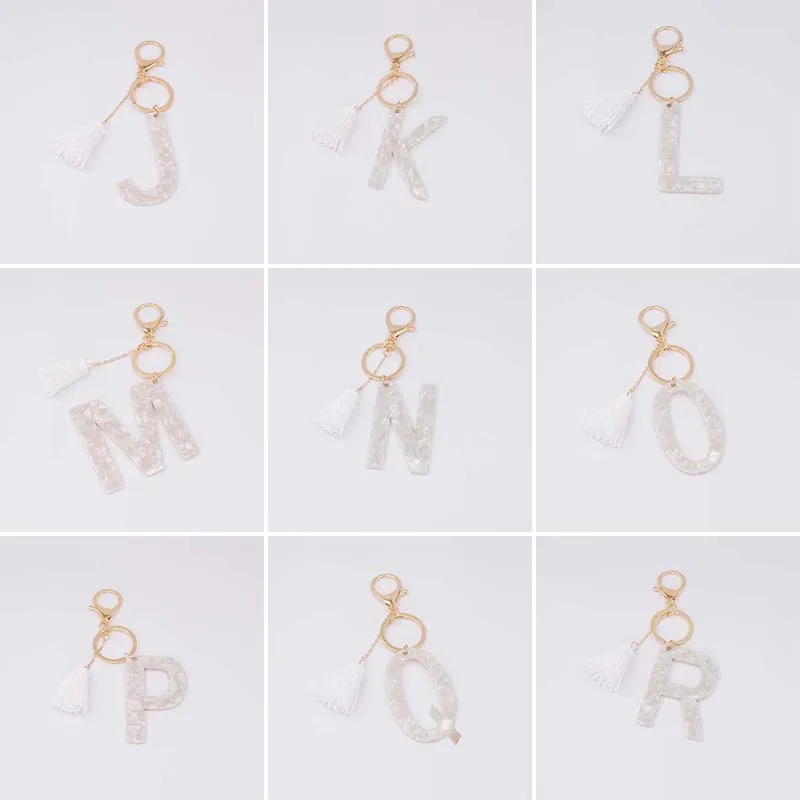 Брелок для ключей, из белого ацетата, с инициалами, золотого цвета, из смолы, алфавит, 26 английских слов, классический кулон, ювелирные изделия, подарок, A-Z
