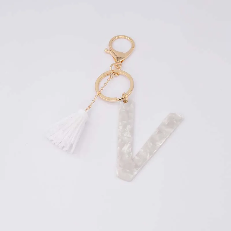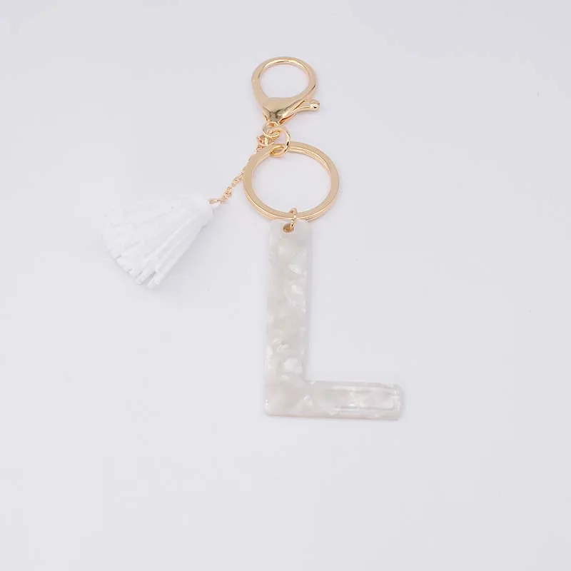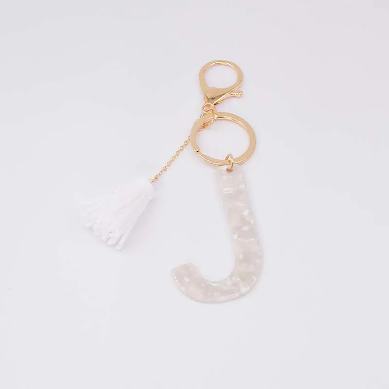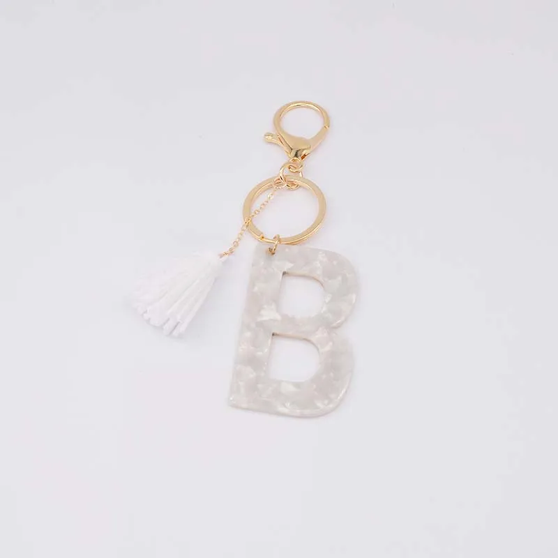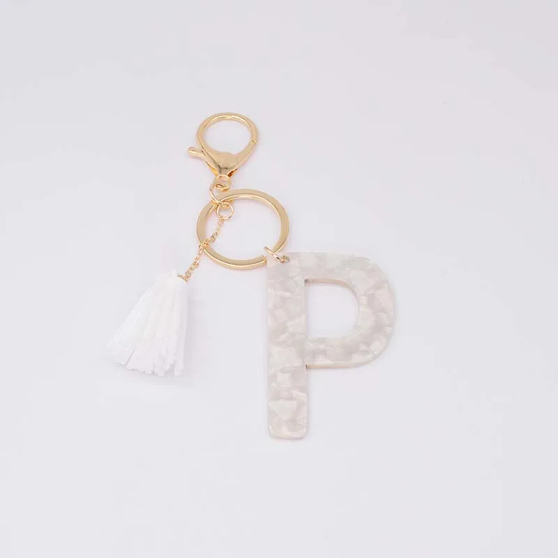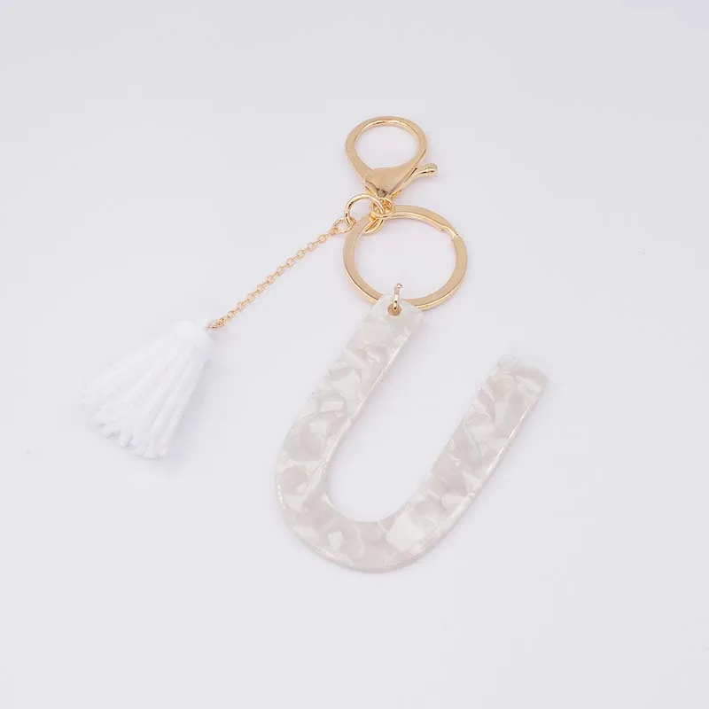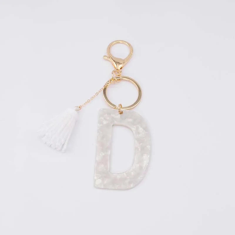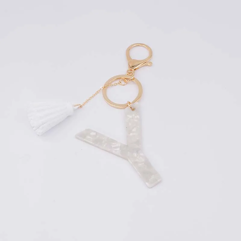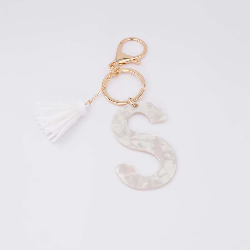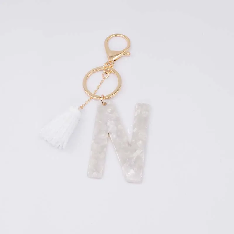 Брелок для ключей, из белого ацетата, с инициалами, золотого цвета, из смолы, алфавит, 26 английских слов, классический кулон, ювелирные изделия, подарок, A-Z