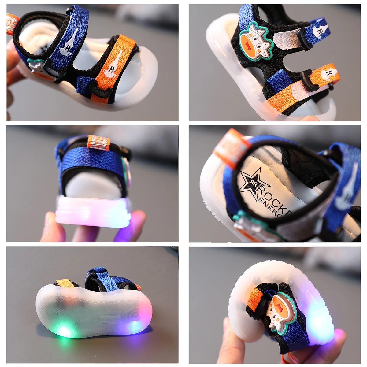 Сандалии Todler для девочек, дышащие светящиеся пляжные шлепанцы с подсветкой, для начинающих ходить детей, размеры 16-25