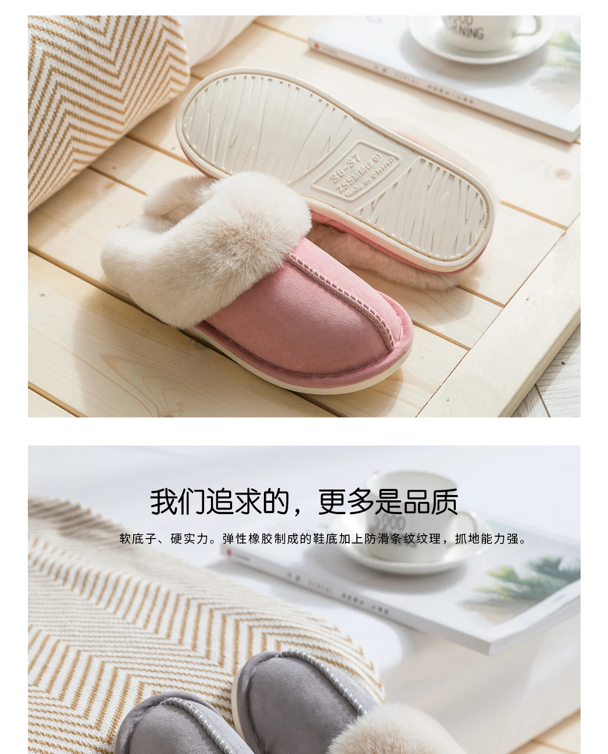 Роскошные домашние женские меховые тапочки из искусственной замши, Зимние теплые плюшевые Нескользящие парные тапочки для спальни, женские меховые тапочки для дома