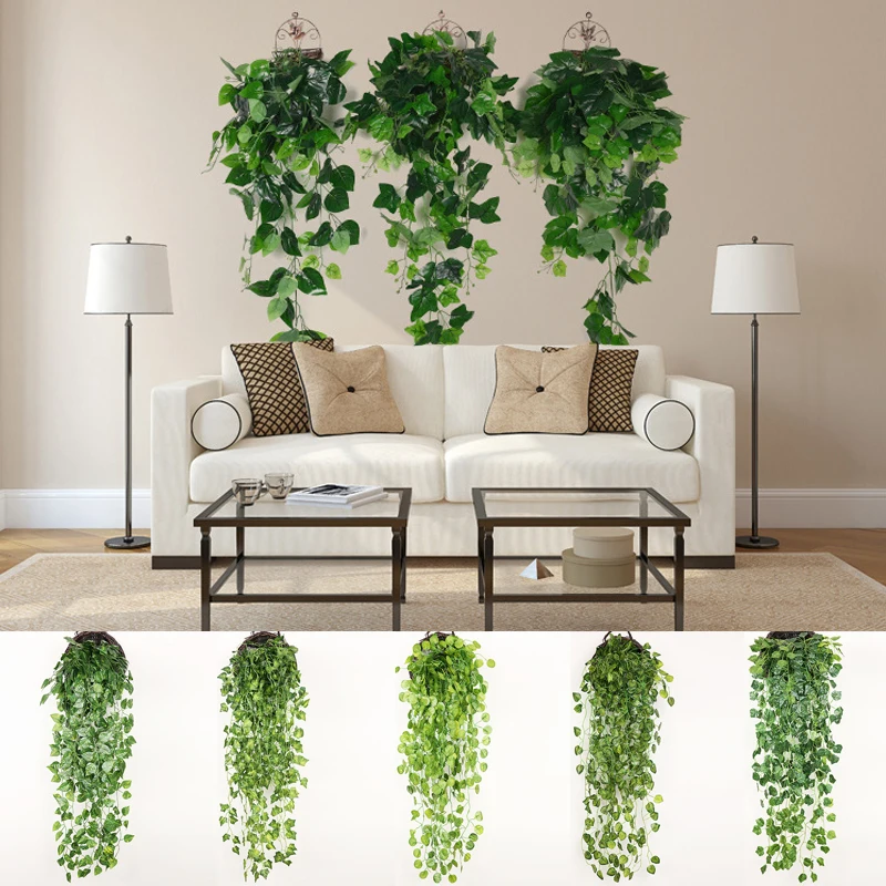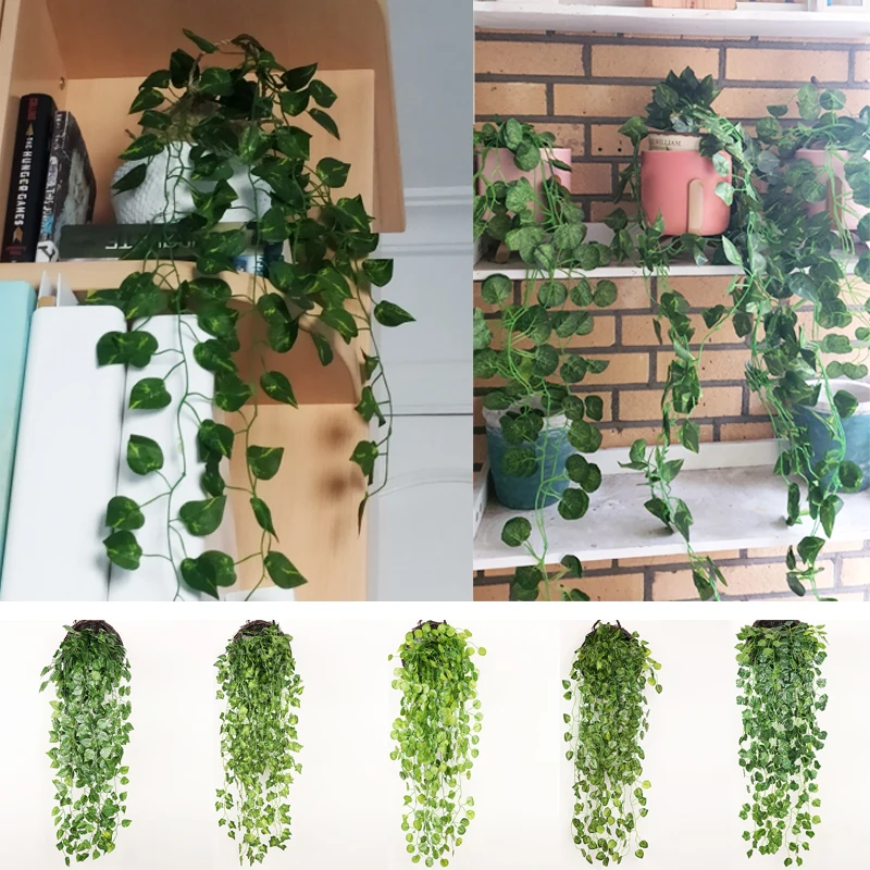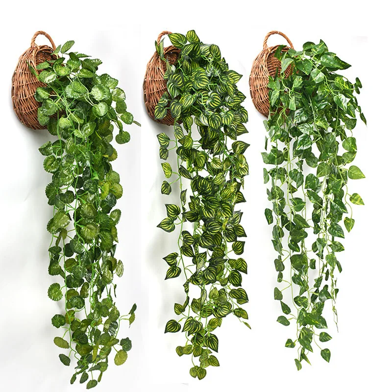 Зеленые искусственные листья растений, Виноградная лоза, Свадебная вечеринка, для дома, украшение для садового забора, настенная гирлянда из ротанга, Крипер, Плющ