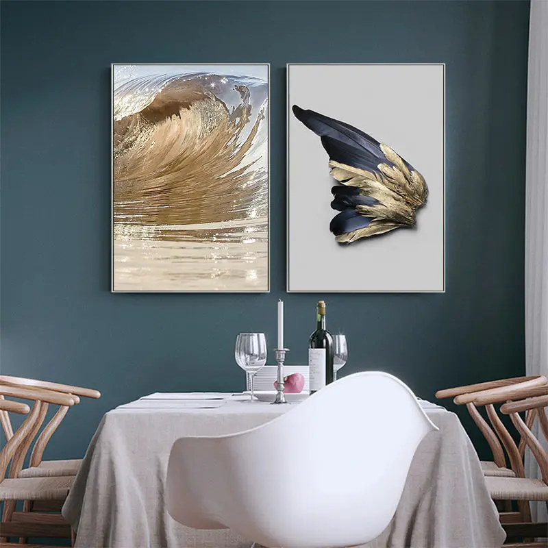Роскошный Золотой перо Wall Art Холст Картина Плакаты и принты черного и золотого цвета бабочка картина с изображением крыльев для домашнего декора