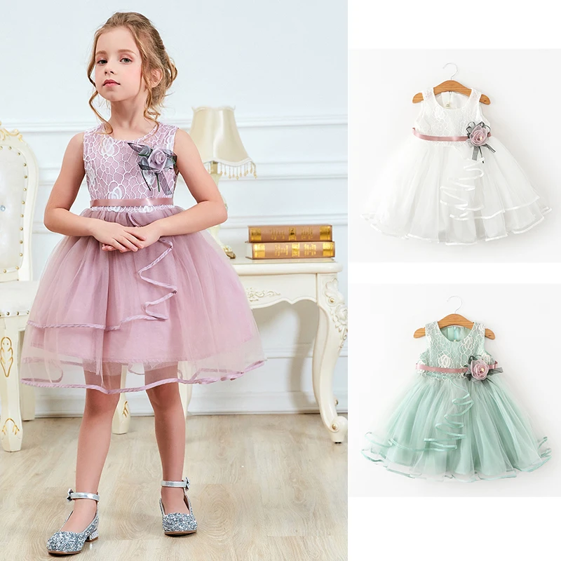 Элегантное кружевное платье принцессы для девочек; Летнее вечернее платье без рукавов, из тюля, платье с юбкой-пачкой для девочек, От 2 до 6 лет на свадьбу, вечернее платье, детская одежда