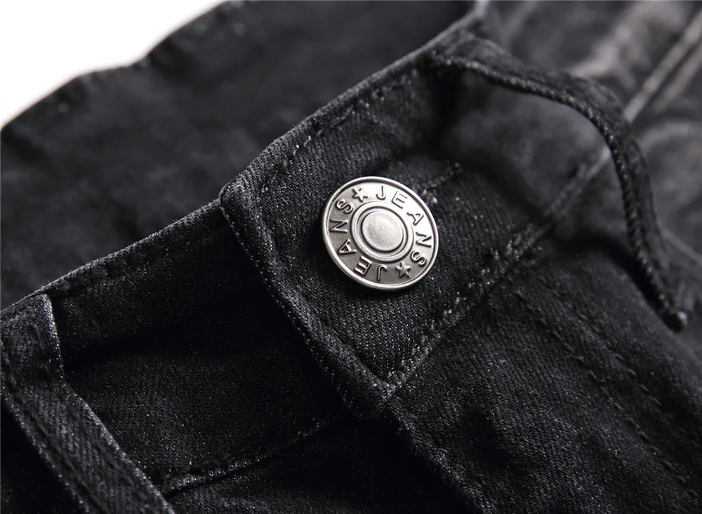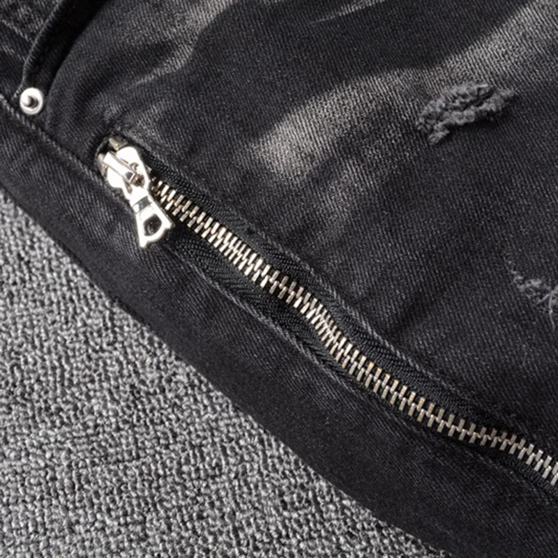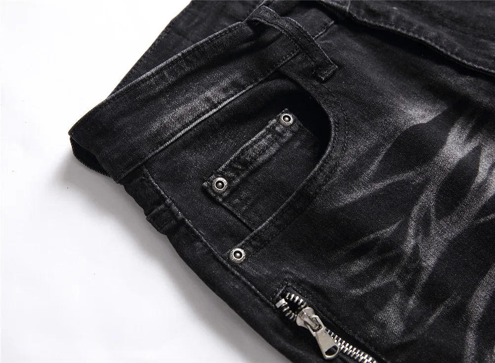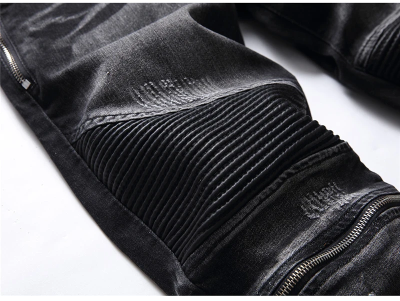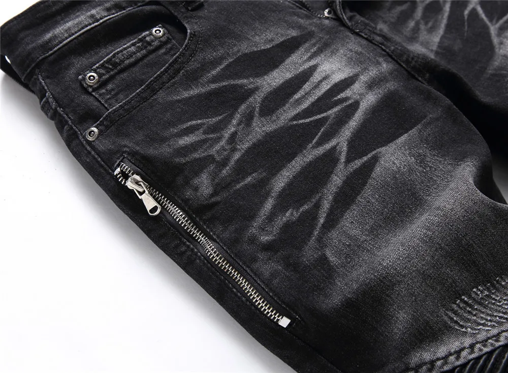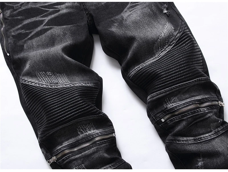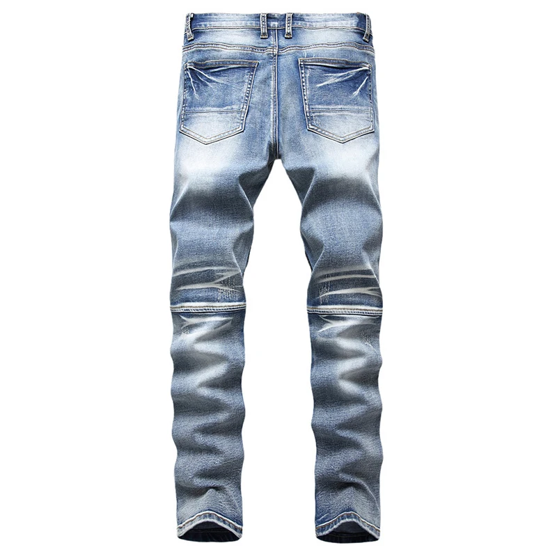 Мужские кожаные Лоскутные байкерские джинсы, уличная одежда на молнии, плиссированные Стрейчевые джинсовые штаны, рваные брюки