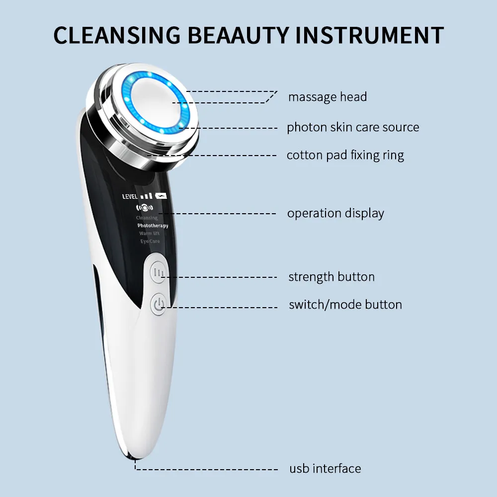 Меры предосторожности при использовании оборудования воздушной рамы:1. Нажмите и удерживайте кнопку питания в течение 3 секунд для включения, она не может быть повернутаВключено во время зарядки;2. Во время использования удерживайте сенсорные полоски с обеих сторон корпусаПальцы и массажная головка связывают кожу, образуя петлю с человекомКорпус;3. При экспорте, пожалуйста, используйте его с хлопковой прокладкой. Смочите ватный тампон сСредство для снятия макияжа или очищающий лосьон. Не используйте его с лицомОчищающее Средство/очищающее масло. (Рекомендуется использовать однослойную хлопковую подкладку дляЛучший эффект, слишком толстый, будет влиять на вибрацию.Особенности:Очищающий и омолаживающий косметический инструментЭто косметическое устройство для лица, которое может глубоко очистить, оживить и омолаживатьКожи и улучшает контуры лица. Он интегрирует положительные иОтрицательные ионы + тепло + микро вибрация + красный и синий свет.* Положительные и отрицательные ионы: использование принципа притяжения положительныхИ отрицательные ионы противоположного пола, грязь в глубоких пор звездыЭкспортируется через биологический ток. Тщательно очищает косметические ингредиентыЧерез Ионофорез проникает в кожу.* Вибрация: используя механическую вибрацию и метод стимуляции напряжения,Кожа человека затягивается, повышается ее эластичность и метаболизмУлучшены клетки кожи.* Теплый: теплый массаж способствует впитыванию, так что текстура кожиРастягивается и кожа становится полнее.* Красный свет: 640nm-650nm красный свет проникает в кожу для продвиженияКоллаген и эластичность, уменьшает морщины и восстанавливает молодость.* Синий свет: синий свет подавляет акне, снимает акне, подтягивает поры, акне,Закрытый рот, покраснение и т. Д. Он может лучше высушить акне и помочь очистить бактерии.