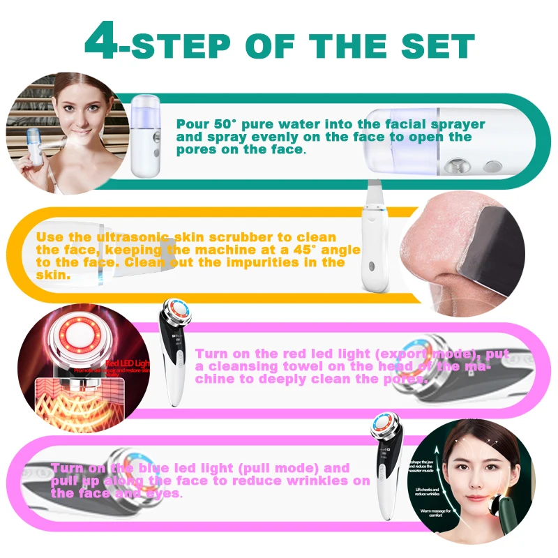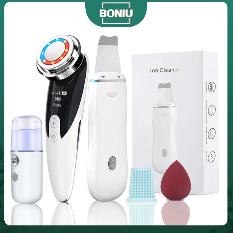 ультразвуковая чистка лица аппарат для чистки лица микродермабразия комплект вибрации Уход за кожей лица лопаточка для удаления угрей EMS светодиодный массажер для лица кавитации пилинг лифтинг лица