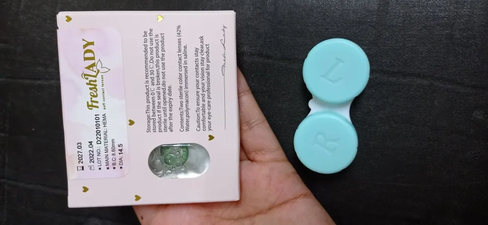 Замочите ваши линзы в растворе для ухода, которое является эксклюзивным для контактных линз на 24 часа, затем осторожно покрасьте их в краску. Перед ношением линз Проверьте обе стороны, чтобы избежать неудобств, таких как раздражение, сухость глаз, размытое зрение и т. д.