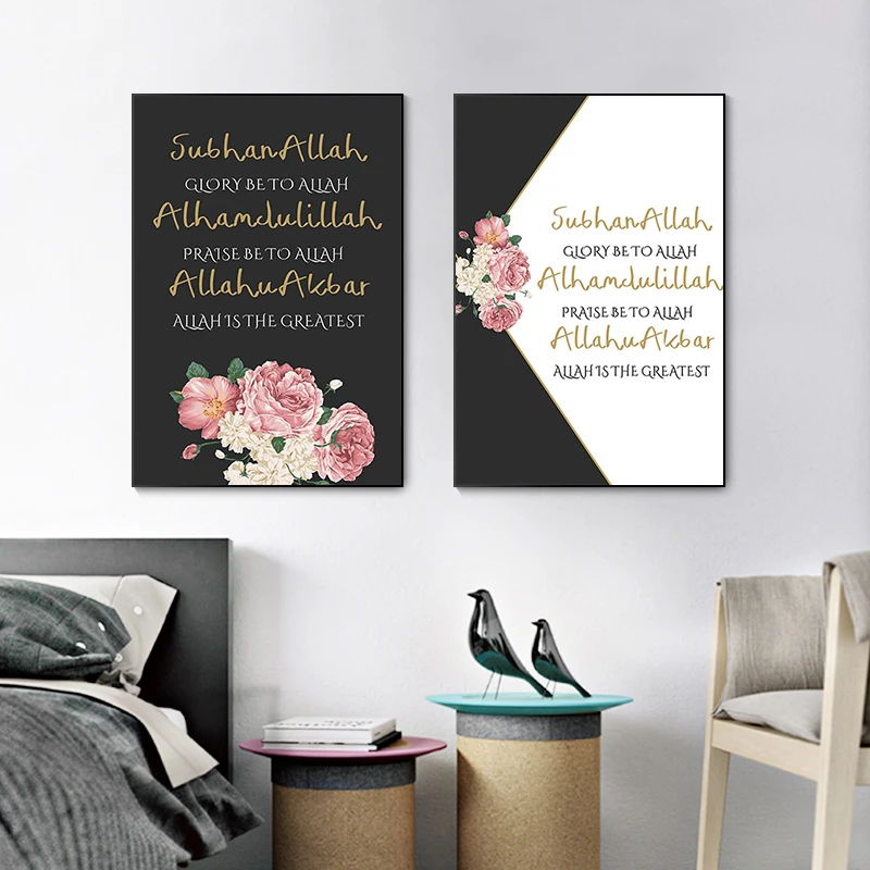 Арабская каллиграфия живопись стена исламское искусство холст печать акварель цветы современный плакат Рамадан Поп Арт Фотографии Декор стены