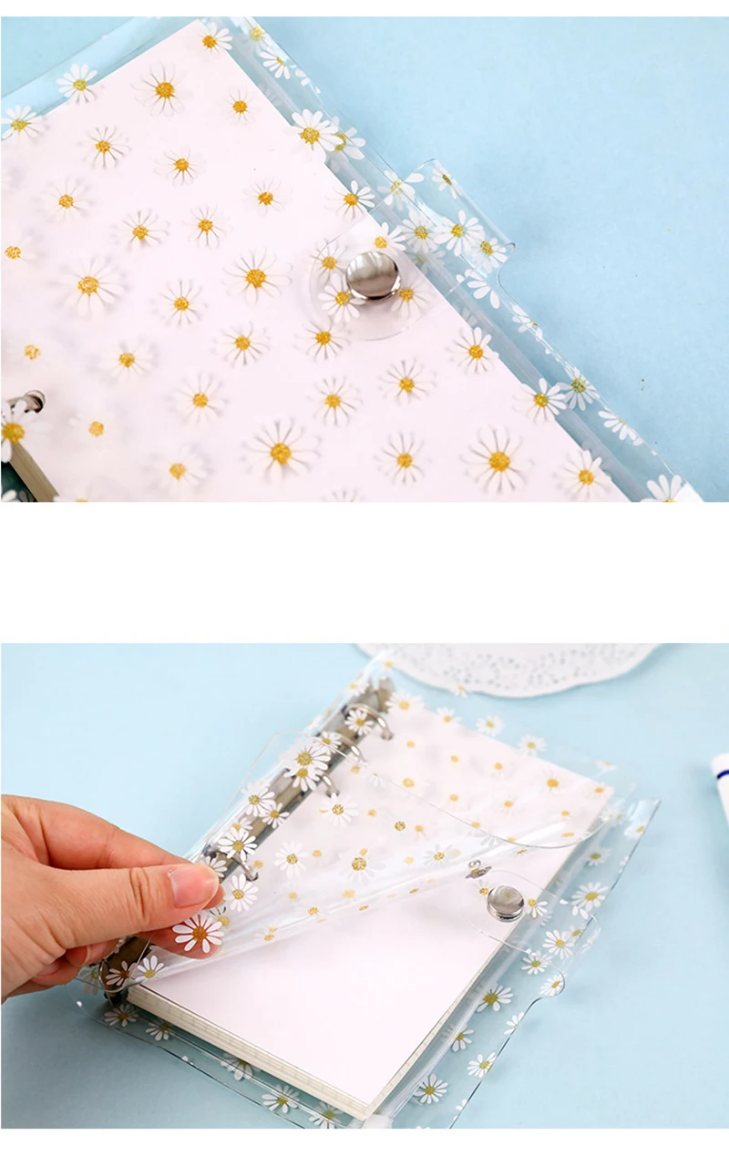 Милый маленький блокнот с маргаритками A6a7, прозрачный, 6 колец, б...