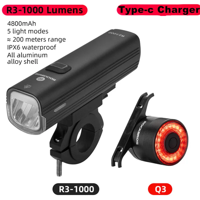 ROCKBROS Тип c зарядное устройство велосипедный светильник защита от дождя зарядка Велоспорт свет s Передняя лампа головной светильник алюминиевая ультра легкая вспышка