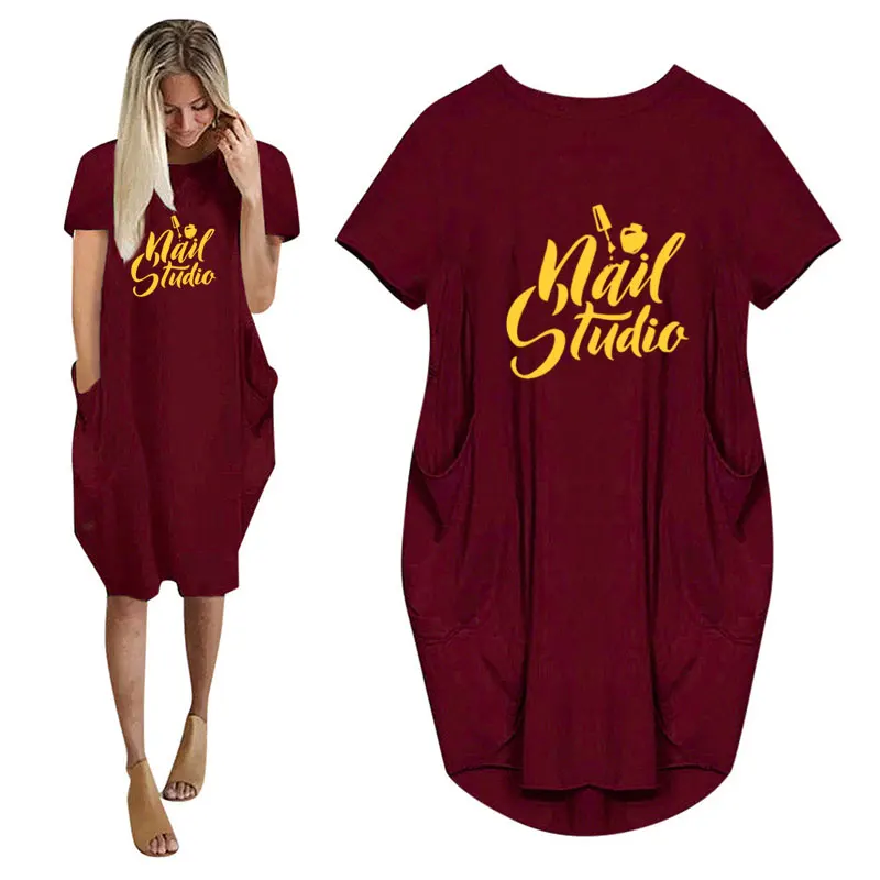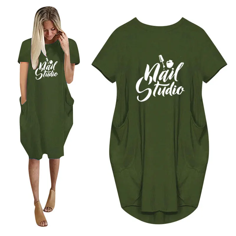 Женское платье с карманами, Длинное свободное платье-футболка с круглым вырезом для маникюра и педикюра, для салона красоты, дизайна ногтей