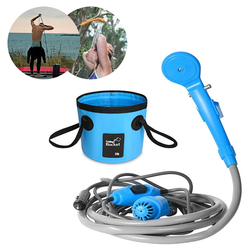 Портативная душевая насадка для мытья автомобиля, комплект для душа со складным ведром, для кемпинга и купания, 12 В постоянного тока