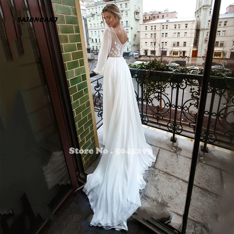2021 скромные мягкие свадебные платья с длинным рукавом Бохо с откр...