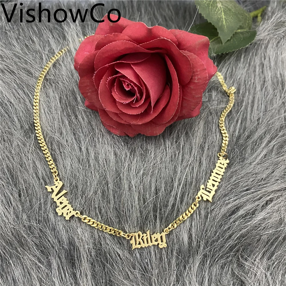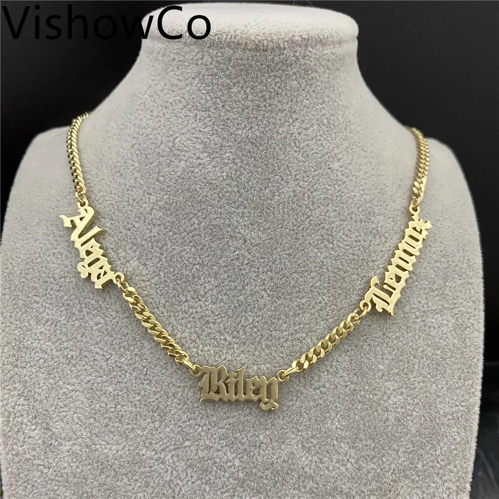 Ожерелье с именем VishowCo на заказ, старинная кубинская цепь из нержавеющей стали на заказ, ожерелье с несколькими именами, подарки на день рождения