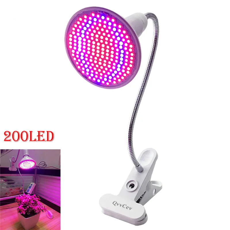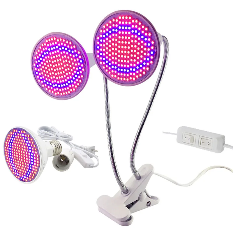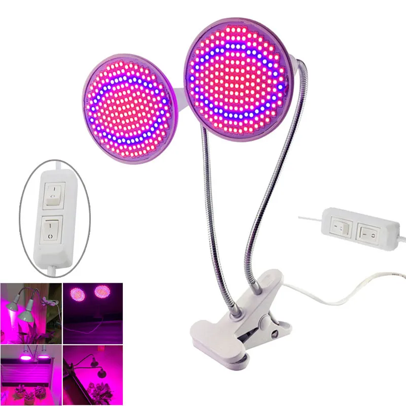 Светодиодный светильник для выращивания растений, 200 светодиодов, двойная лампа с одной головкой, настольная лампа с зажимом, держатель для овощей, для помещений, для теплицы, гидропоники T1
