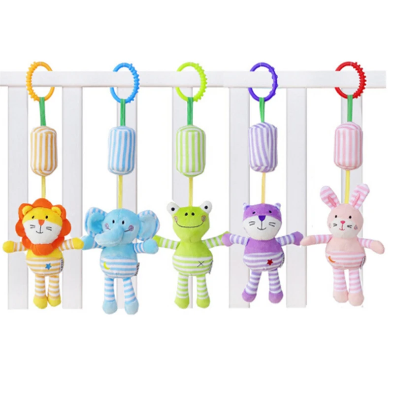 2022 Мягкие плюшевые погремушки для новорожденных Детская кроватка погремушки для коляски Мультяшные животные лягушка Слон Кролик Кот Лев подвесные игрушки 0M +