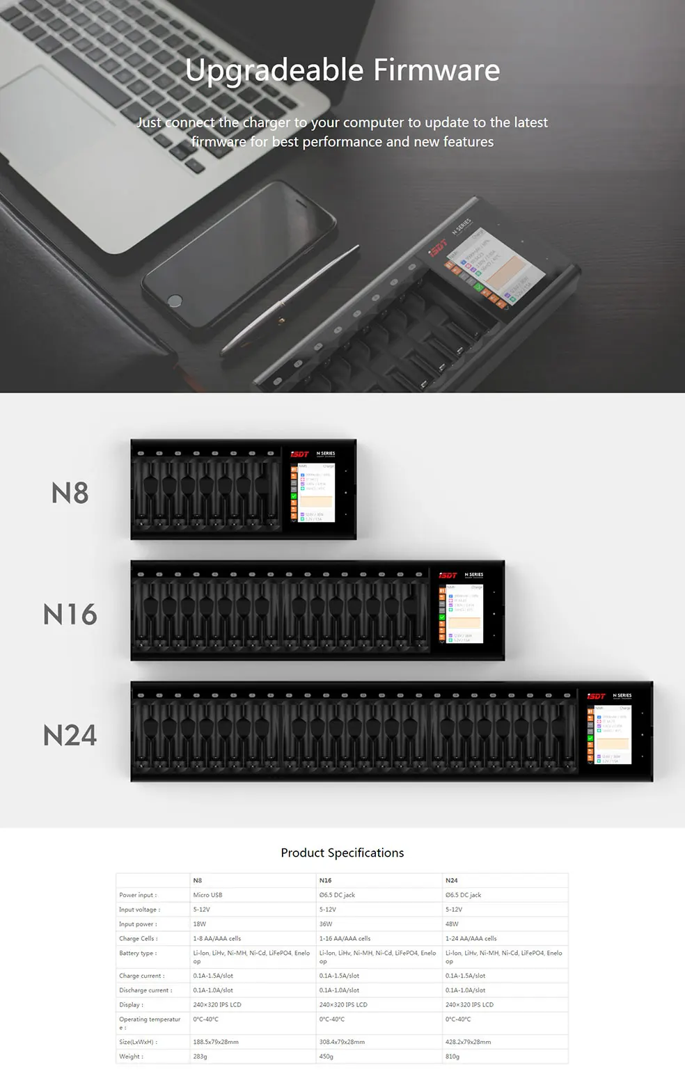 Зарядное устройство ISDT N8, N16, N24, 5-12 В, AA, AAA, умное зарядное устройство для литий-ионных, никель-металлогидридных, никель-кадмиевых, LiFePO4 аккумуляторов
