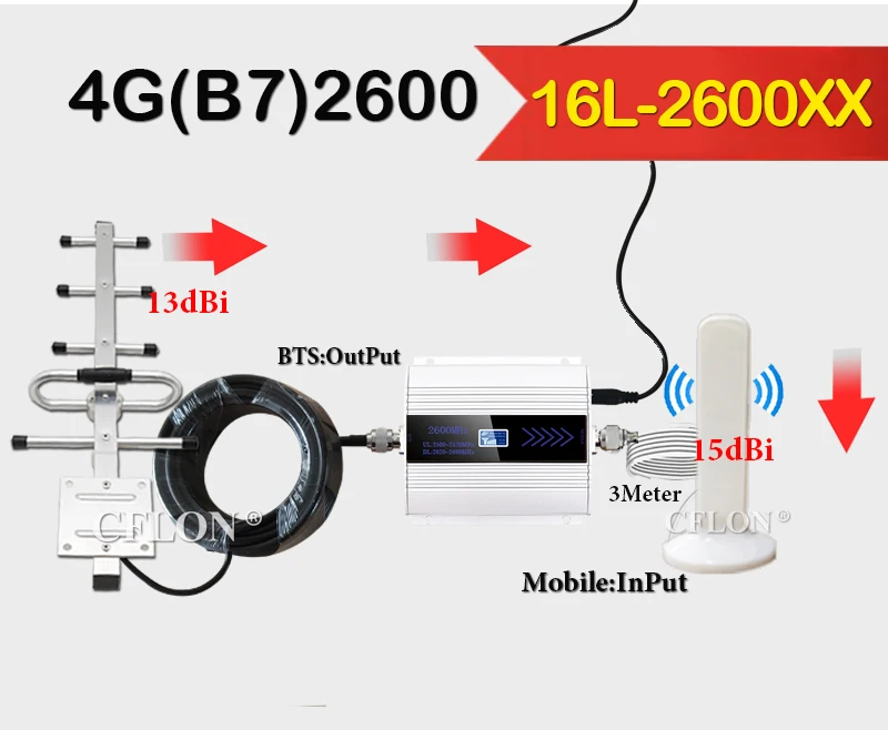 Что входит в комплект ----16L-2600BX = Band7 2600 + Whip антенна + 10dBi всенаправленная присоска антенна с 10 метровым кабелем + источник питания;16L-2600XX = Band7 2600 МГц 4G повторитель сигнала + 15dBi 360 ° всенаправленная антенна с 3 м кабель + антенна Yagi + 10 м кабель + Питание;