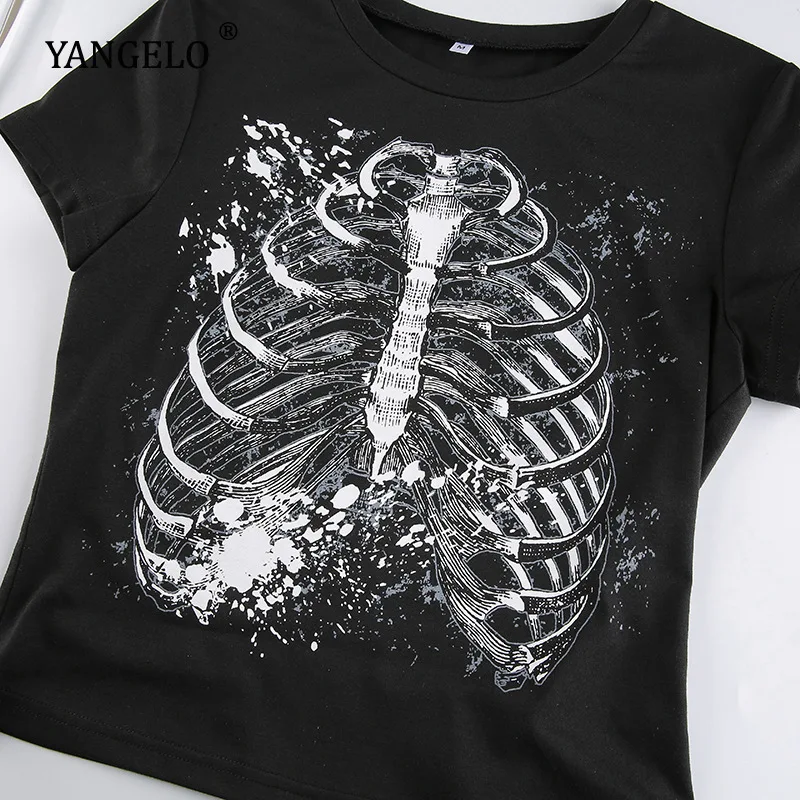Женская футболка y2k, топы со скелетом, гранж, с графическим принто...