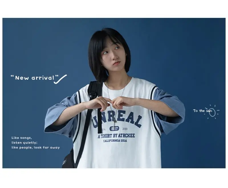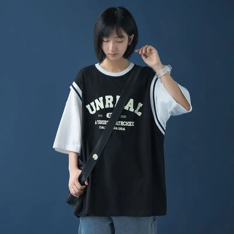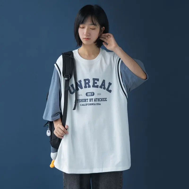 Винтажная футболка из двух частей с имитацией Диабло, летняя Корейс...