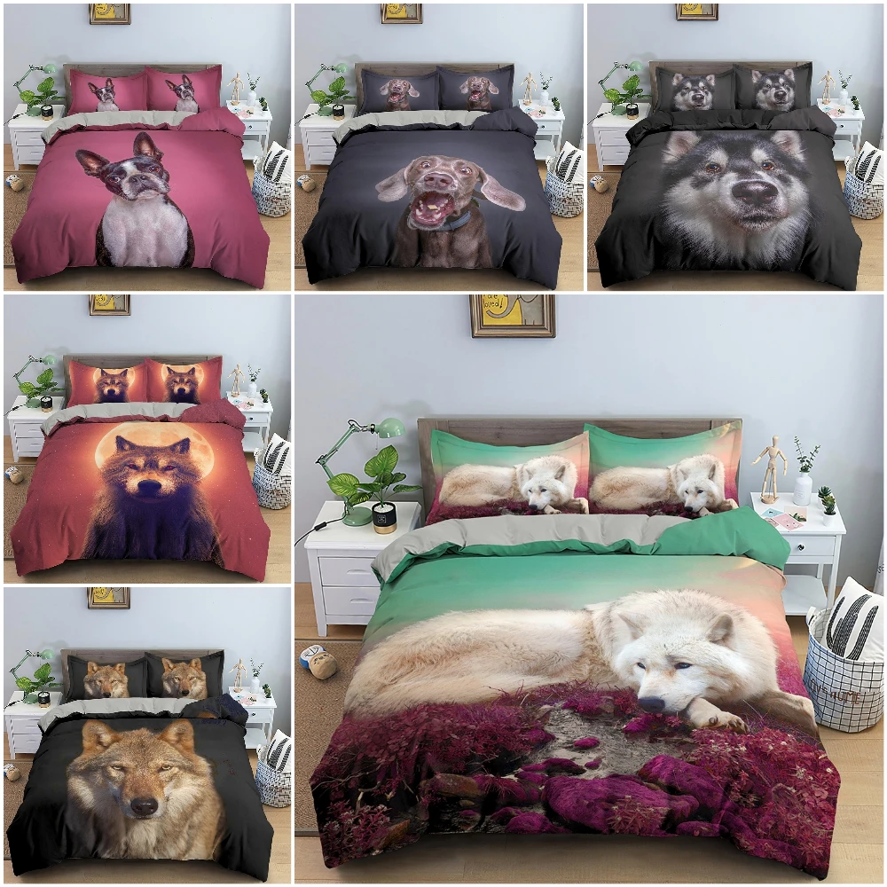Комплект постельного белья с красочной собакой, пододеяльник, компл...